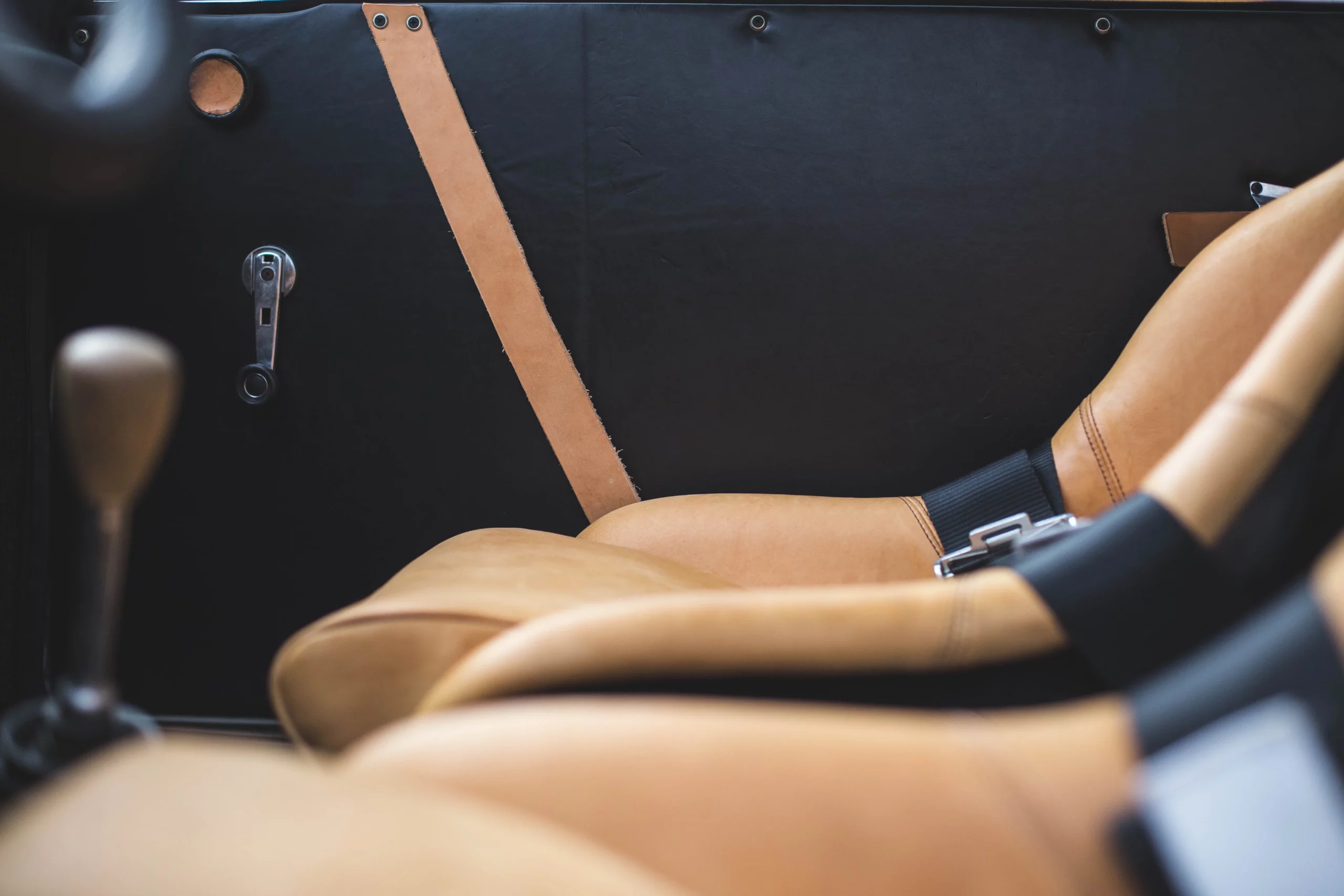 Clad in classic Stage White, MR06 Victoire asserts its character with a clean, minimalist look. Every line expresses purpose and speed without unnecessary flourish. The cabin has been completely reimagined: leather, aluminum, fiberglass… The interior is raw yet refined, designed for driving pleasure and visual impact. From dashboard to seating, every element has been custom-made in our workshop for a truly unique experience.