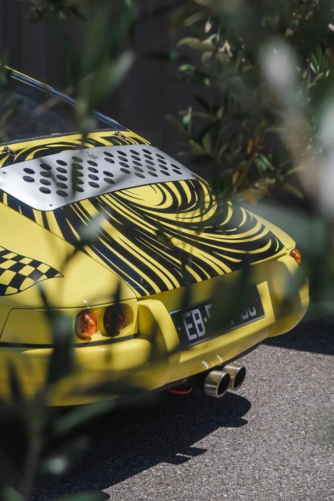 Featuring a Tropical Yellow paint, this Porsche radiates controlled aggression. Its design draws inspiration from fighter plane cockpits and classic race cars, combining lightness and strength. The interior blends metal, leather, fiberglass, and aluminum for a clean, technical cockpit. Every detail is crafted to enhance the driver’s experience, balancing exhilarating sensations with ergonomic precision in a purely sporty atmosphere.