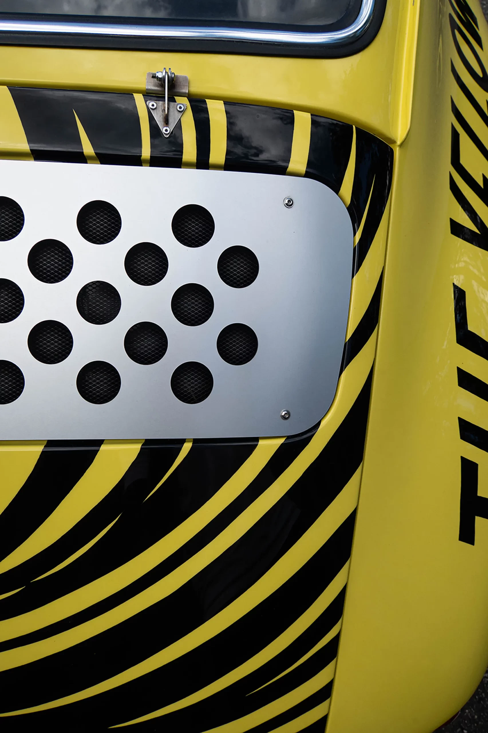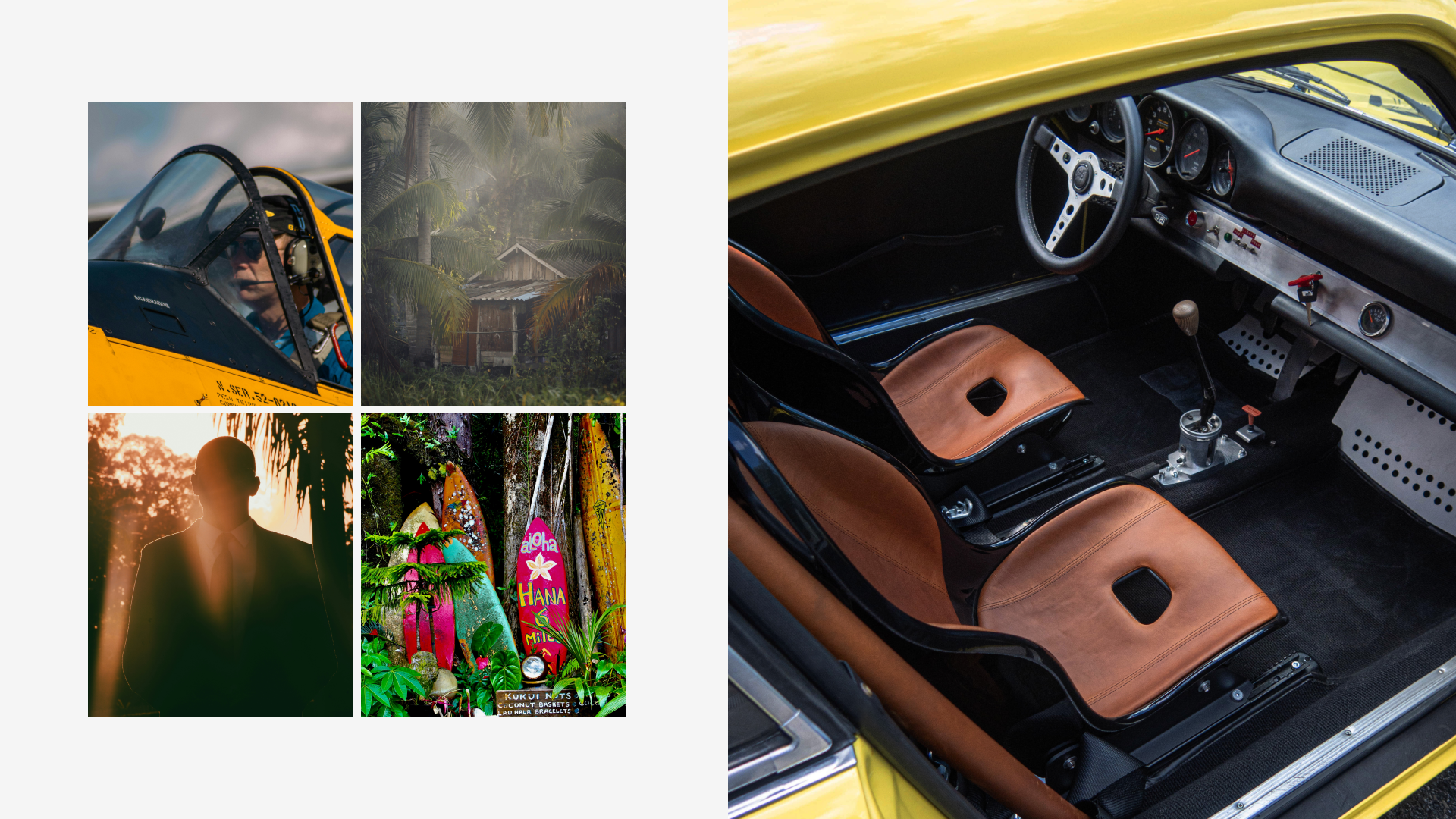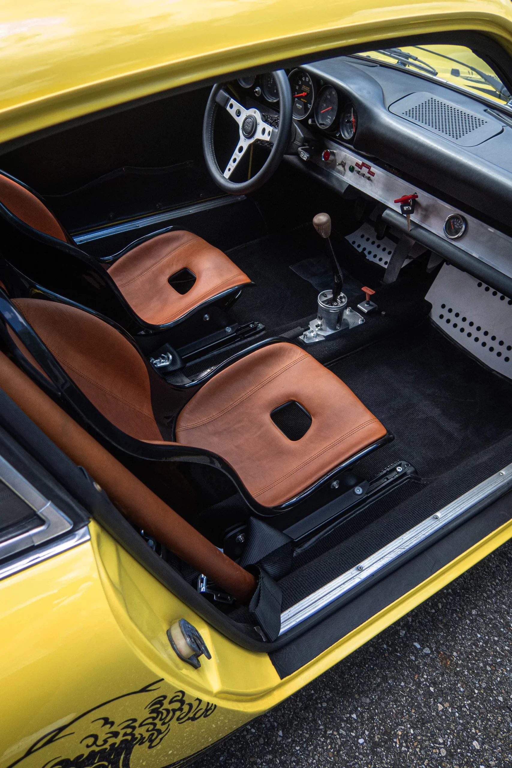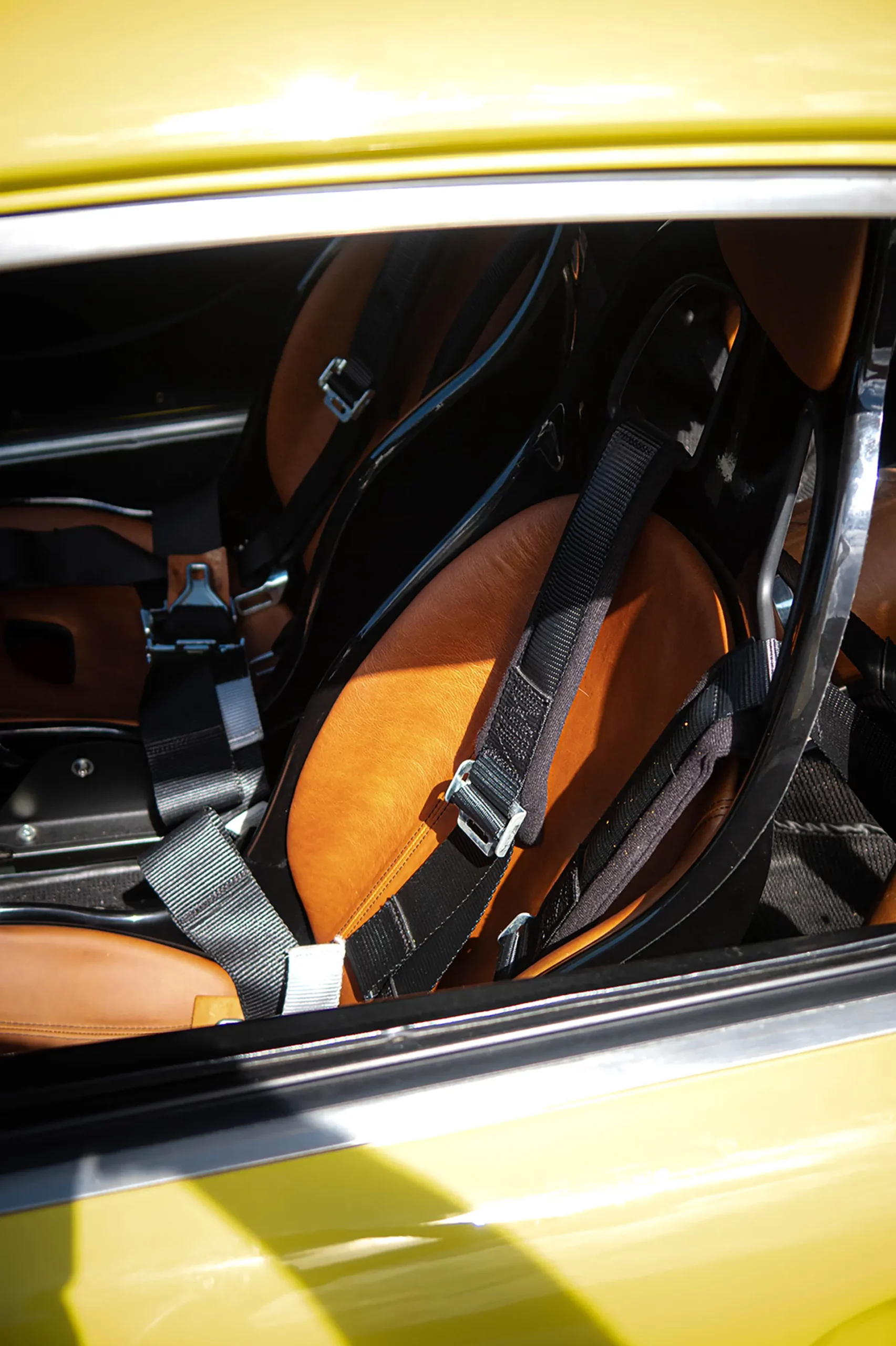 Featuring a Tropical Yellow paint, this Porsche radiates controlled aggression. Its design draws inspiration from fighter plane cockpits and classic race cars, combining lightness and strength. The interior blends metal, leather, fiberglass, and aluminum for a clean, technical cockpit. Every detail is crafted to enhance the driver’s experience, balancing exhilarating sensations with ergonomic precision in a purely sporty atmosphere.