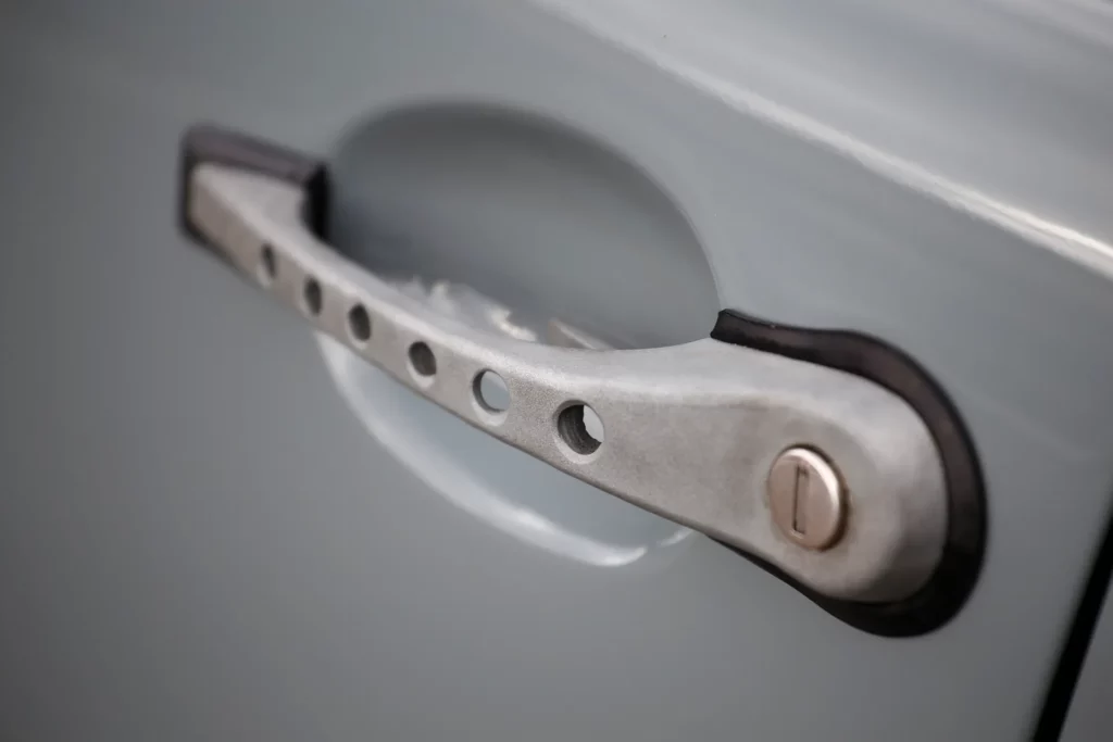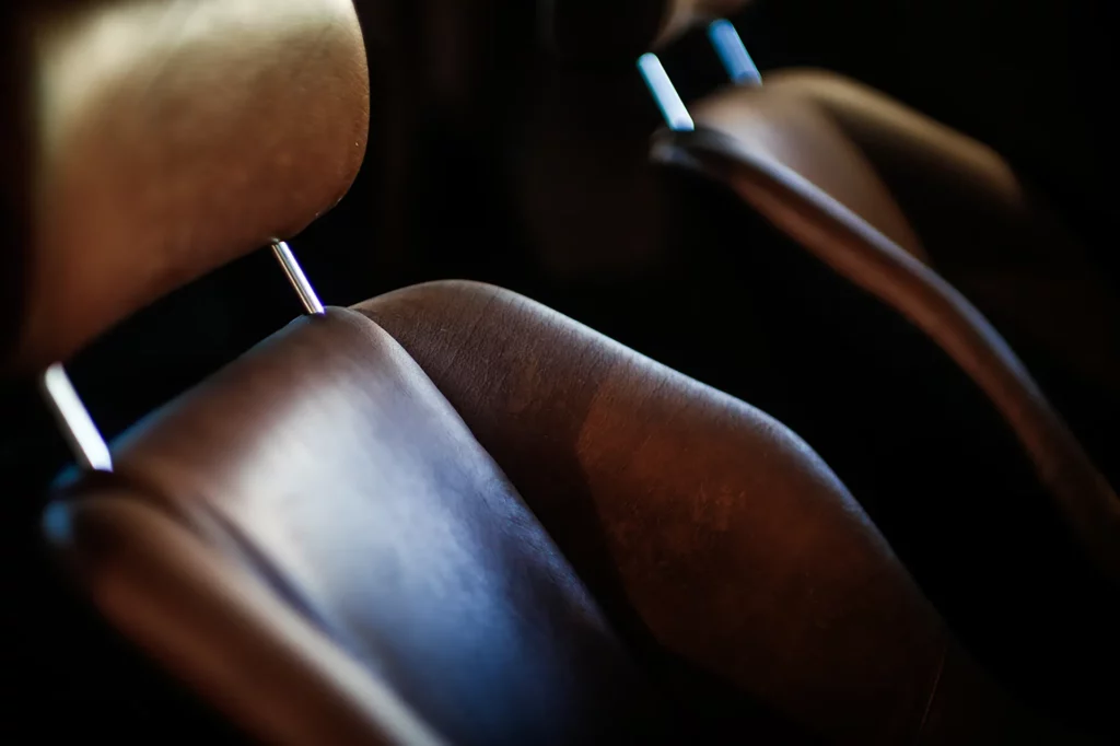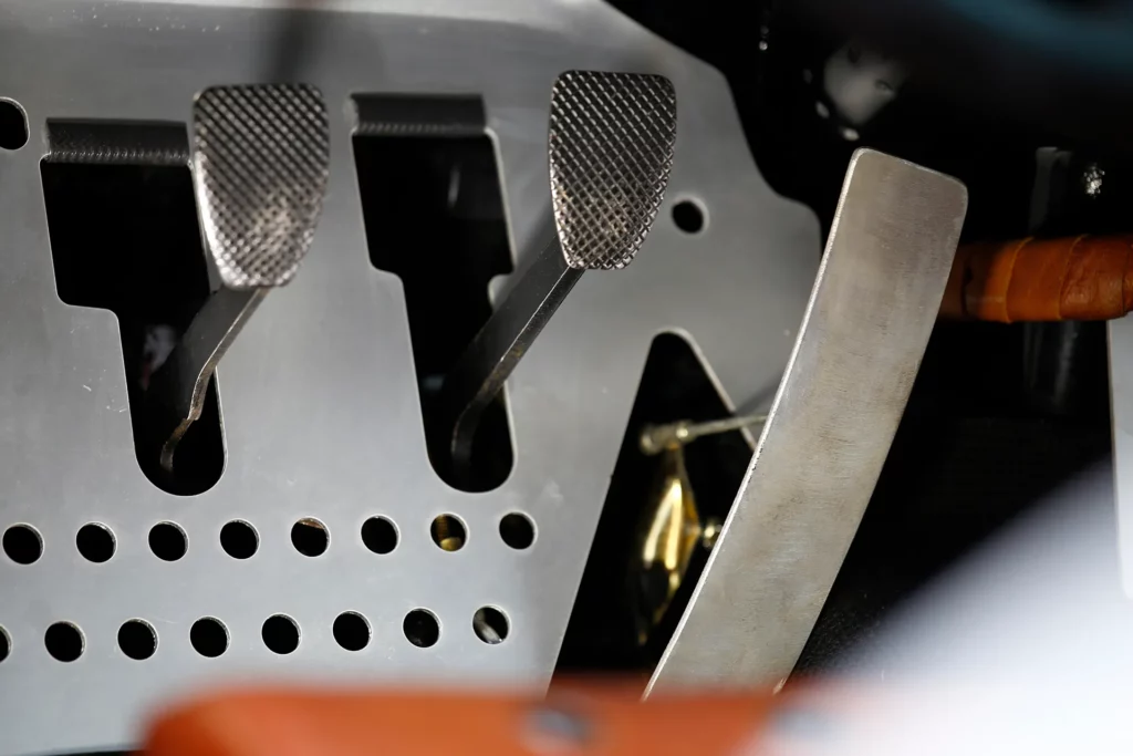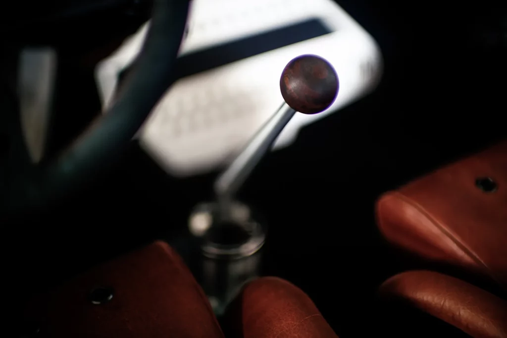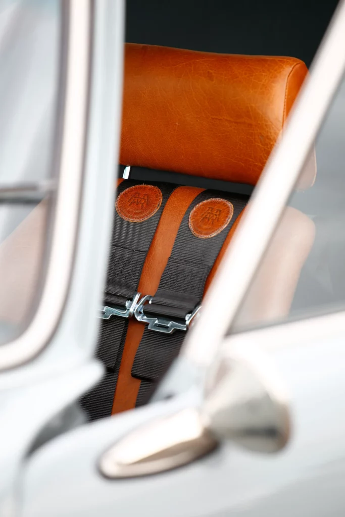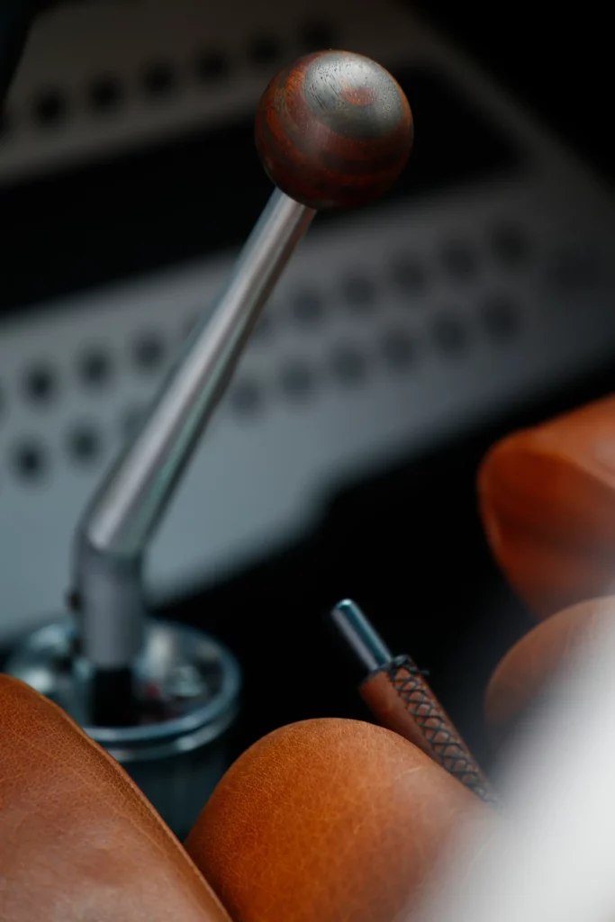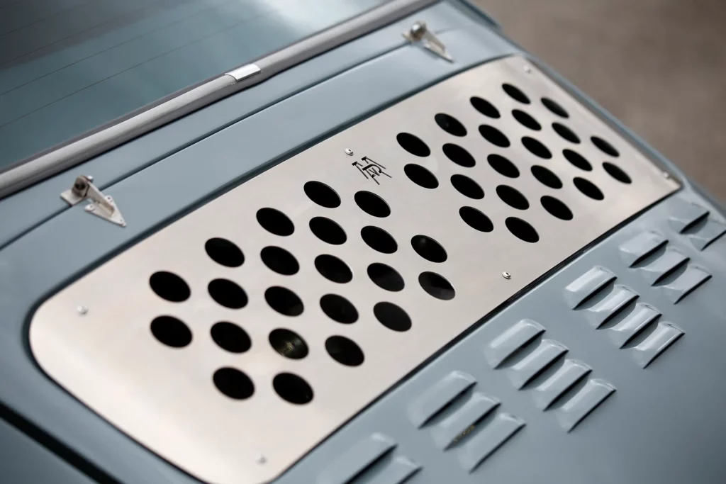 On the outside, a matte Sanctuary Grey finish evokes the sobriety of cult machines. Inside, everything is crafted as an altar dedicated to touch, sight, and smell: hand-stitched buffalo leather even on the roll cage, upholstery fully handmade, with raw materials such as metal, leather, fiberglass, and aluminum. A bold contrast between the austere exterior and rich sensory interior.