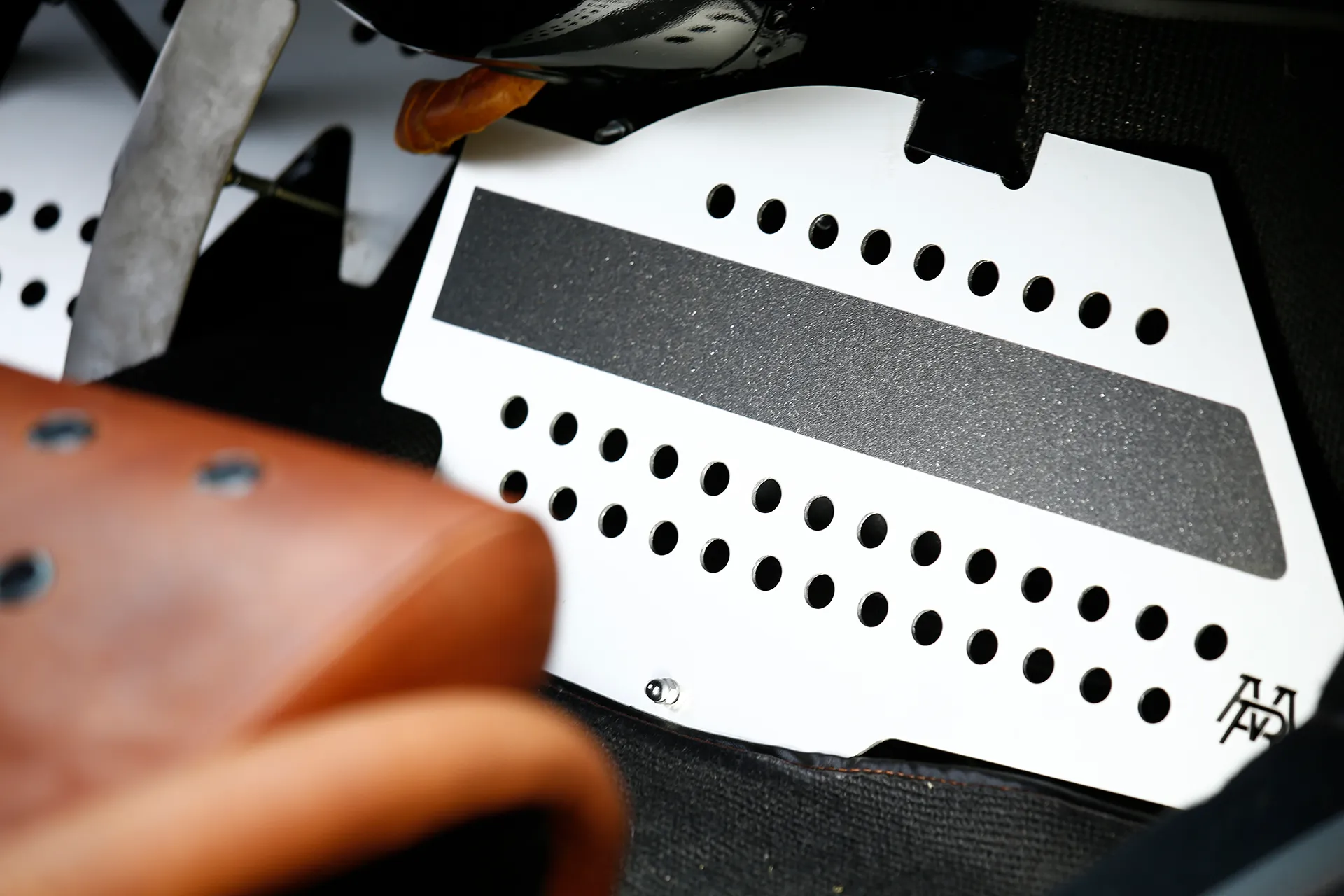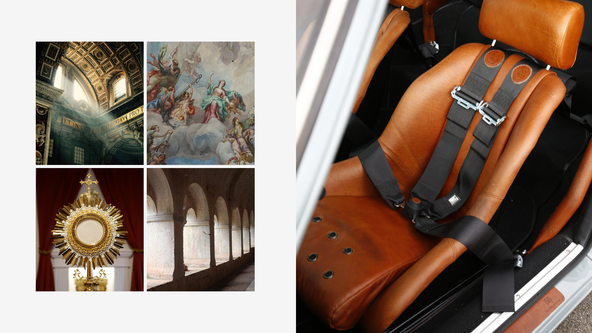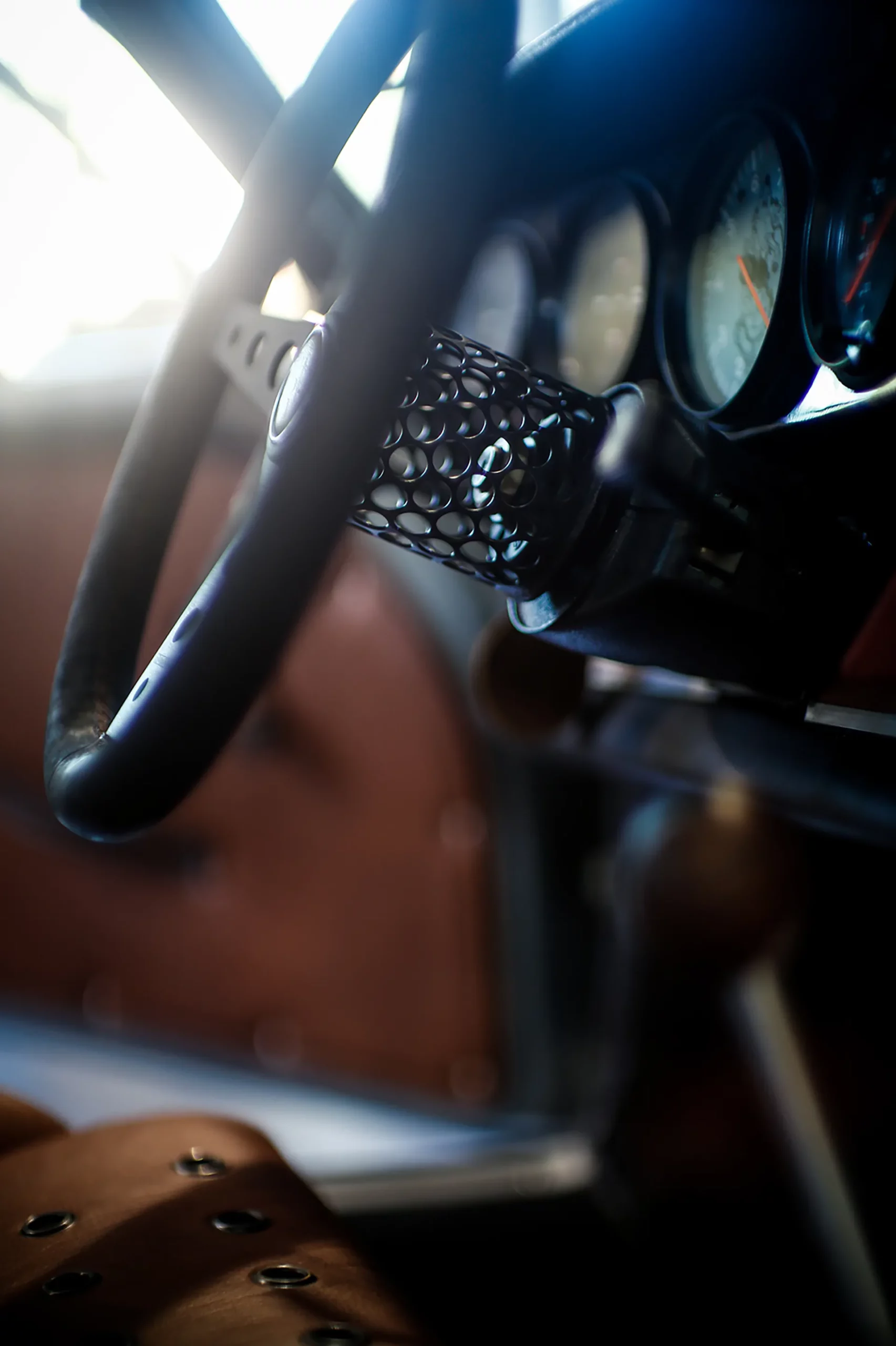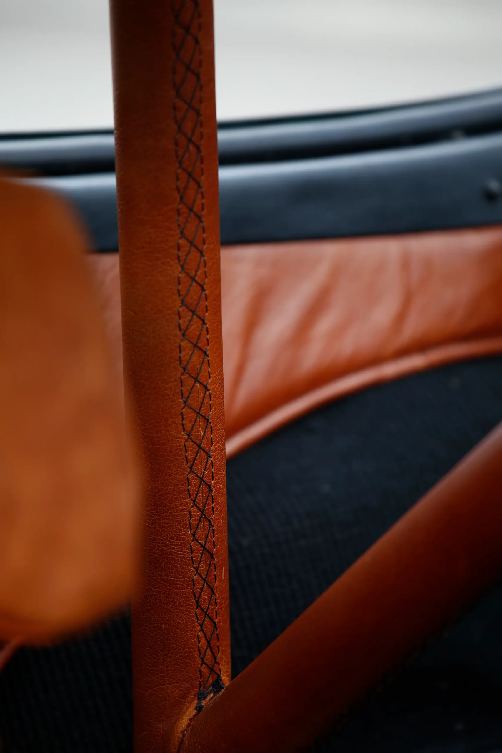 On the outside, a matte Sanctuary Grey finish evokes the sobriety of cult machines. Inside, everything is crafted as an altar dedicated to touch, sight, and smell: hand-stitched buffalo leather even on the roll cage, upholstery fully handmade, with raw materials such as metal, leather, fiberglass, and aluminum. A bold contrast between the austere exterior and rich sensory interior.