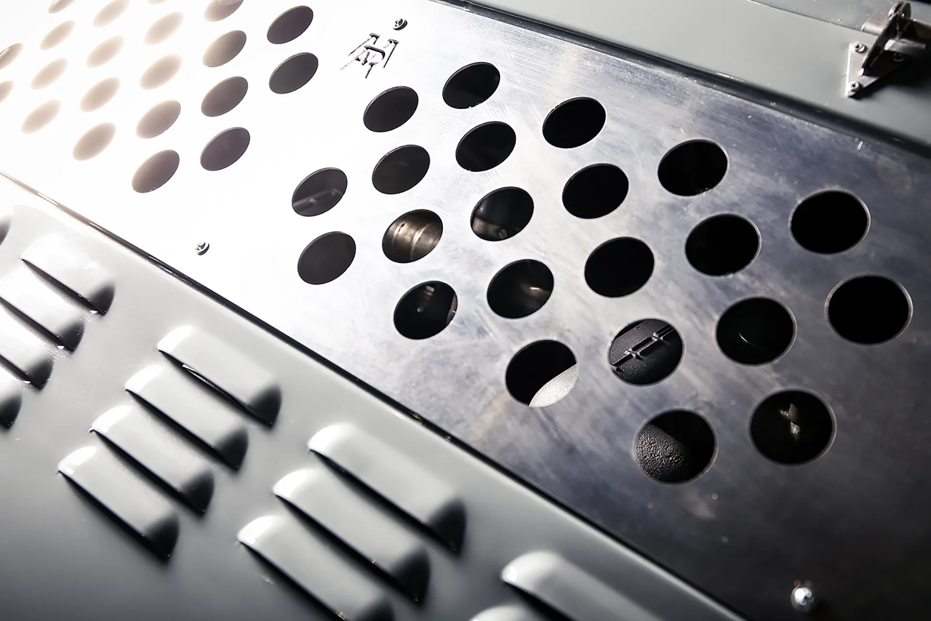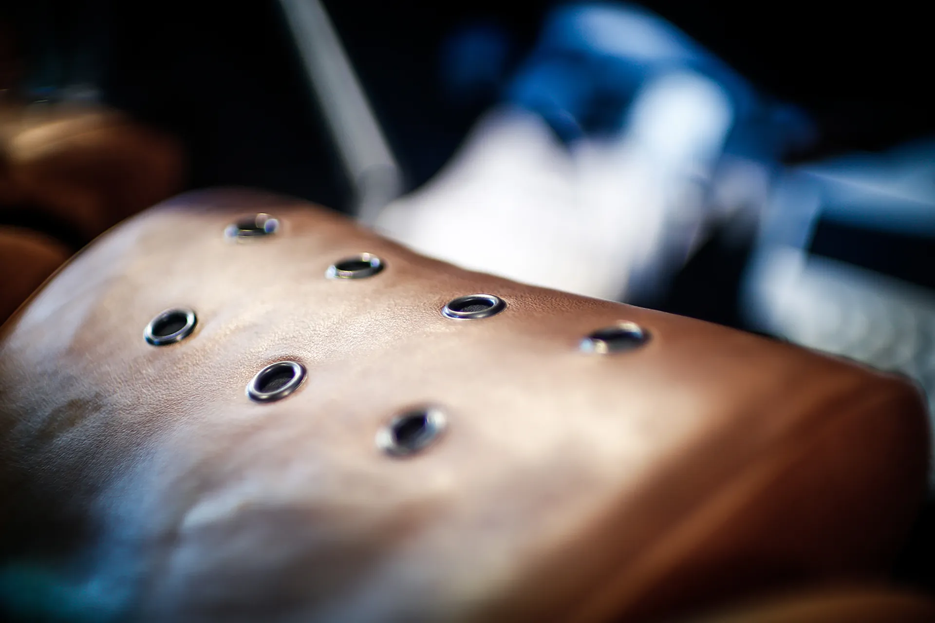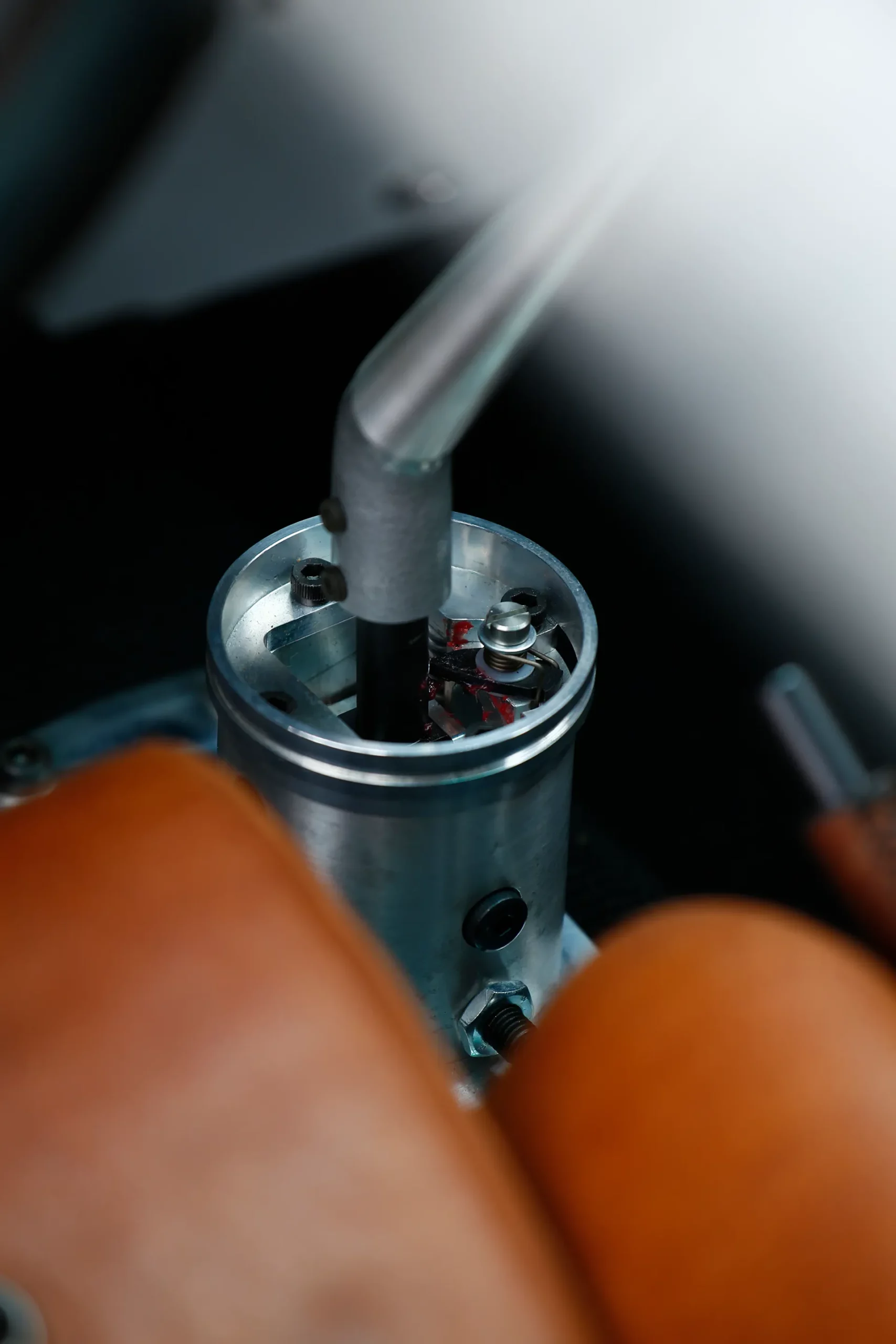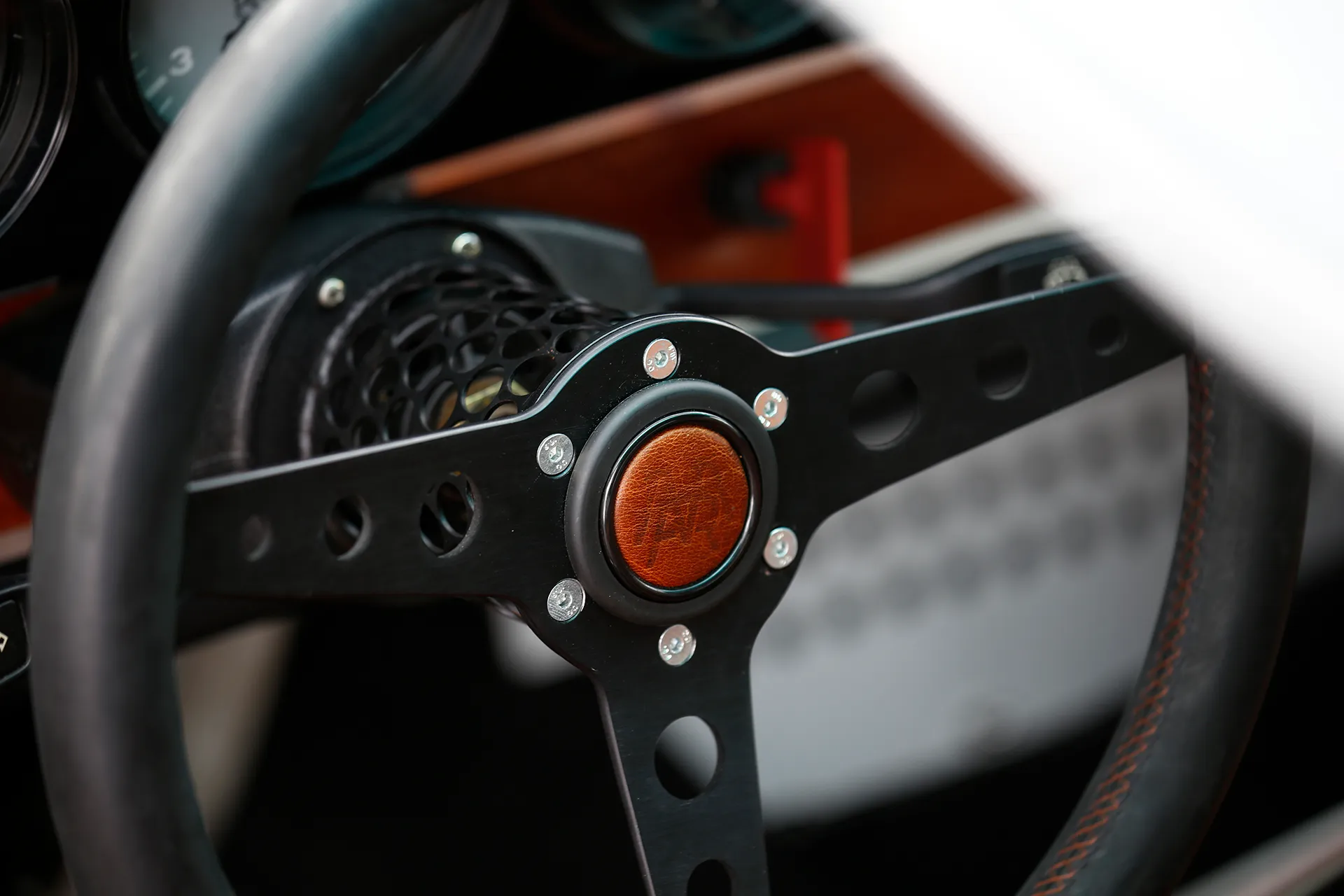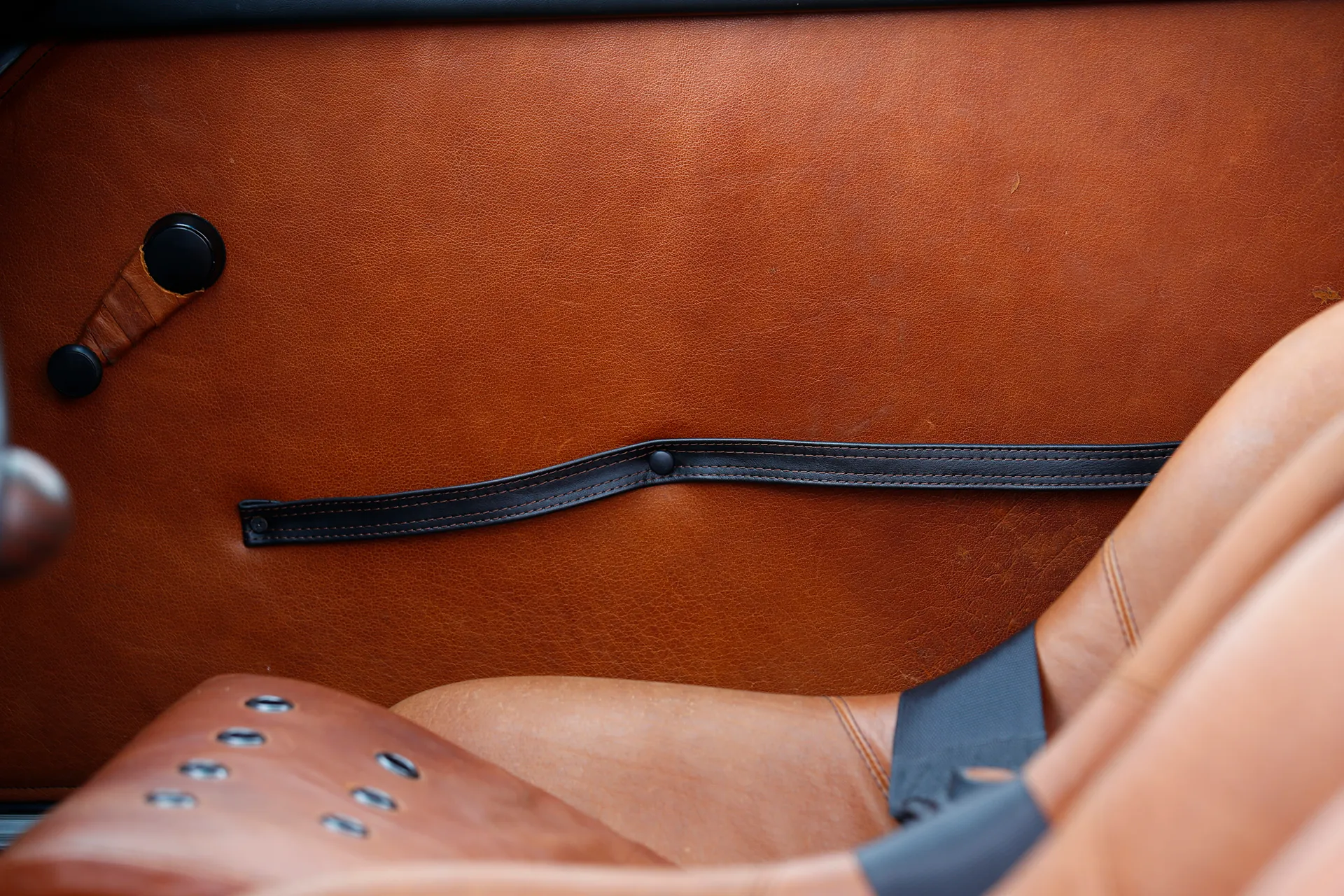 On the outside, a matte Sanctuary Grey finish evokes the sobriety of cult machines. Inside, everything is crafted as an altar dedicated to touch, sight, and smell: hand-stitched buffalo leather even on the roll cage, upholstery fully handmade, with raw materials such as metal, leather, fiberglass, and aluminum. A bold contrast between the austere exterior and rich sensory interior.