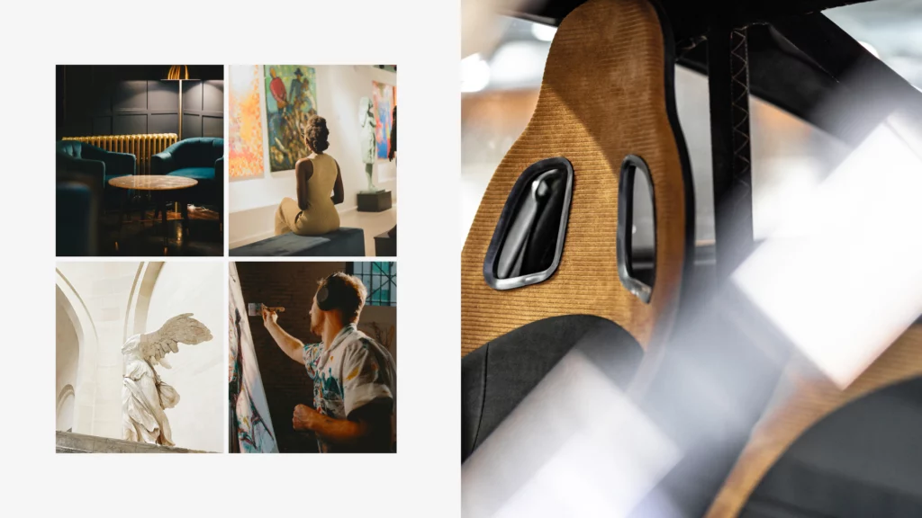Tender Grey body meets the warmth of embossed burnt-orange leather, suede-like surfaces, brushed metal and aluminum. The interior is a carefully curated blend of textures and tones, minimalist yet inviting, elegant yet resolutely focused. It’s a moving salon, where German engineering meets French craftsmanship, and where every detail reflects an uncompromising pursuit of balance and beauty.