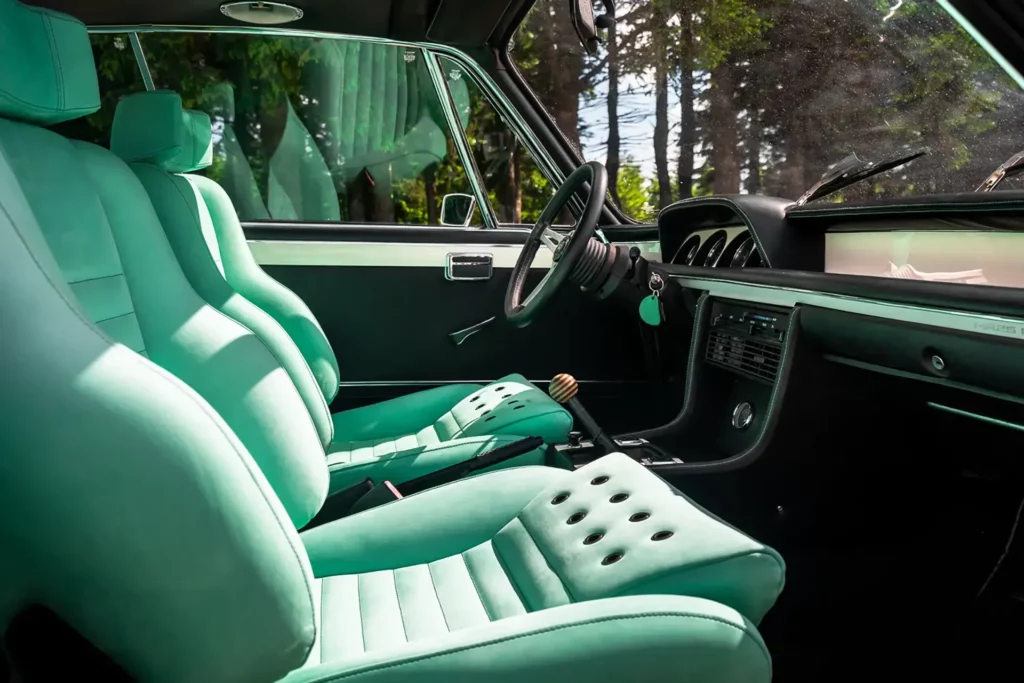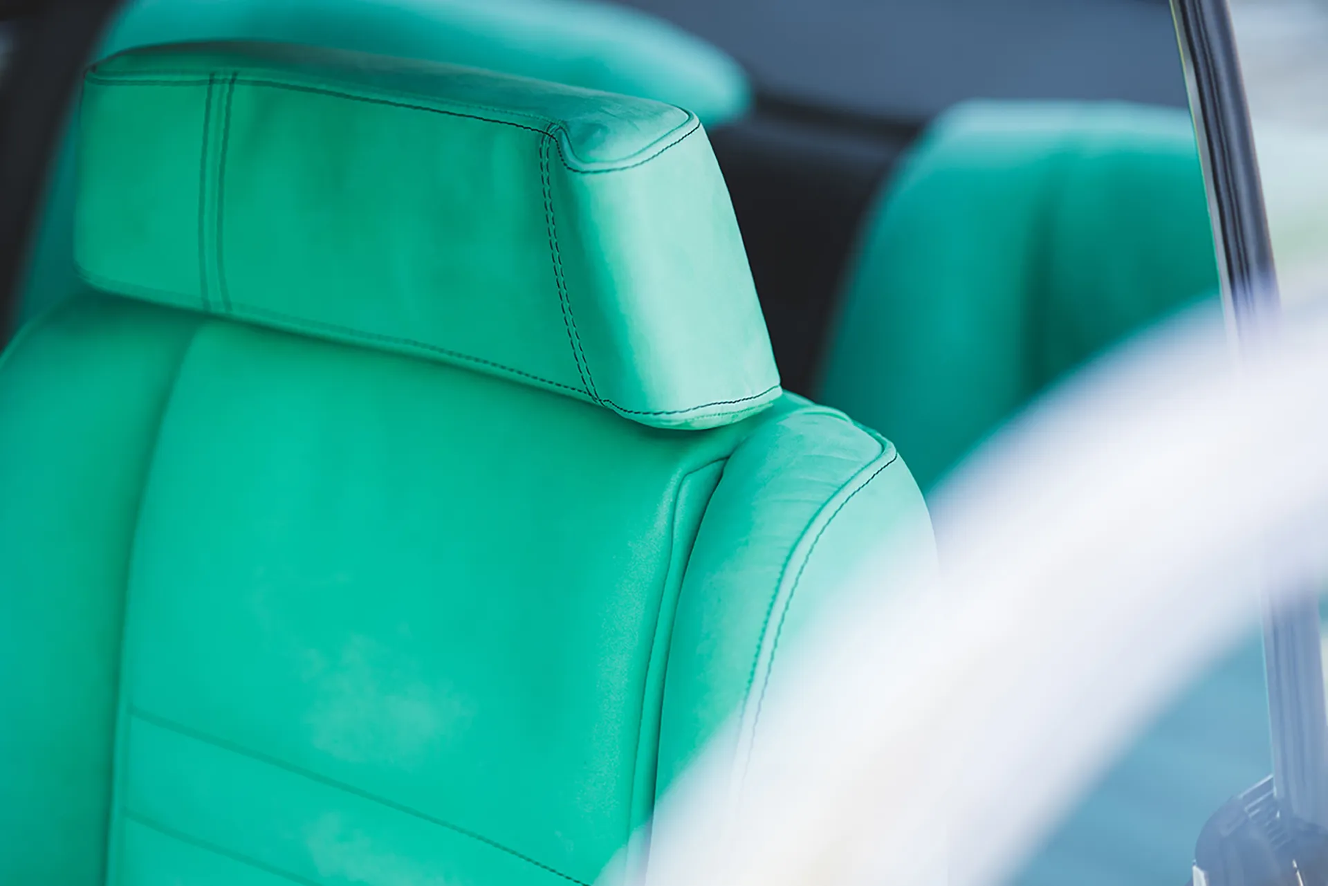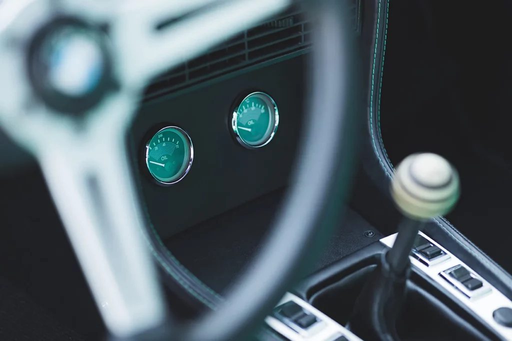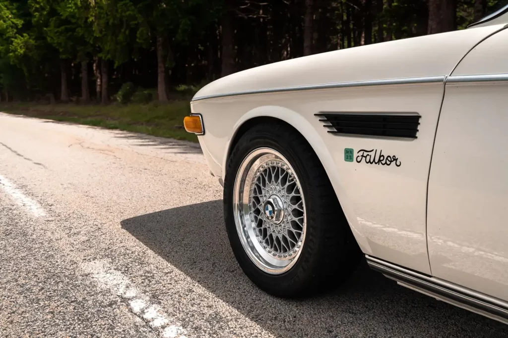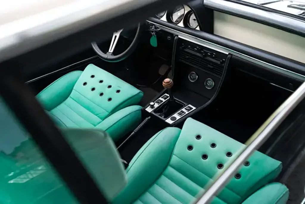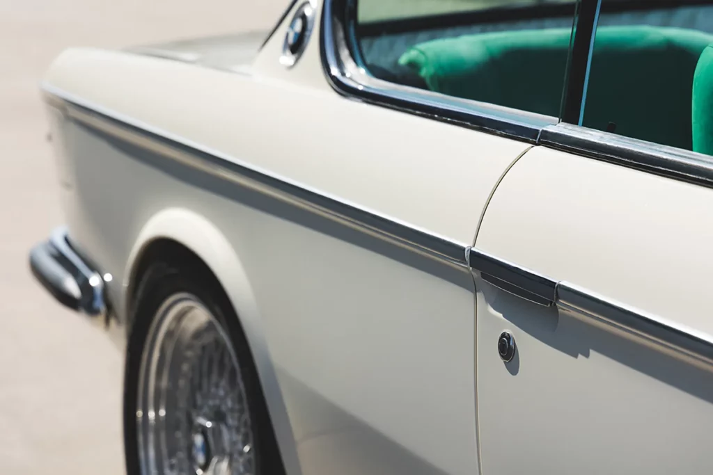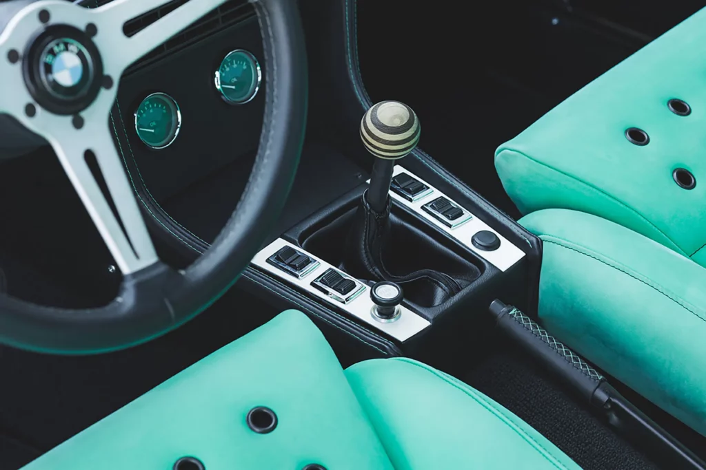 MR25 Falkorwears the flowing, timeless lines of the E9 coupé in bright Mythic White, accented with gleaming chrome. Inside, a custom mint green suede upholstery sets a tone of freshness and refined boldness. Every element has been bespoke-designed: fine stitching, deep carpets, wood accents, reimagined switchgear… together creating an interior both luminous and luxurious. In contrast to the raw edge often associated with restomods, FALKOR embraces elegance, poetry, and a sense of rare, understated luxury.
