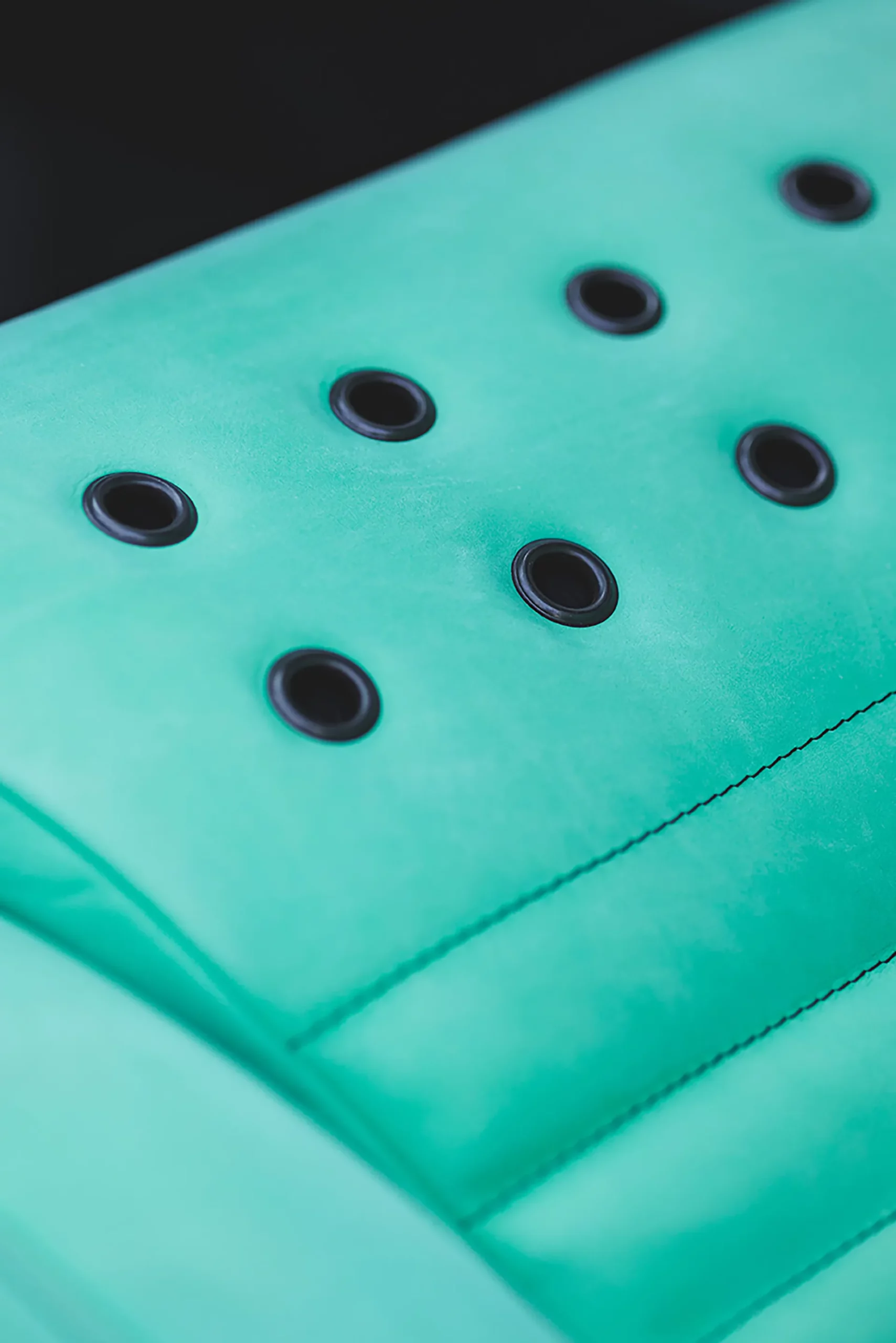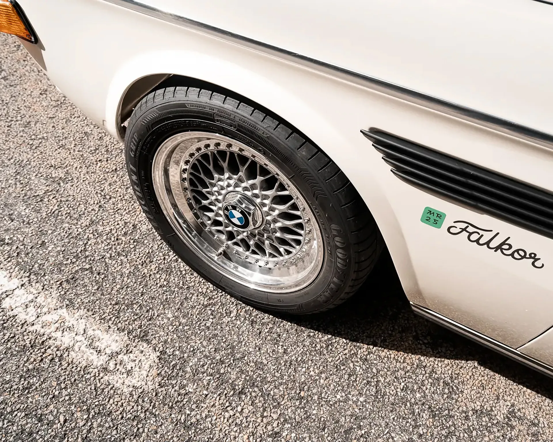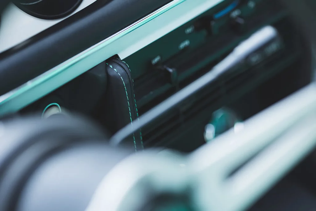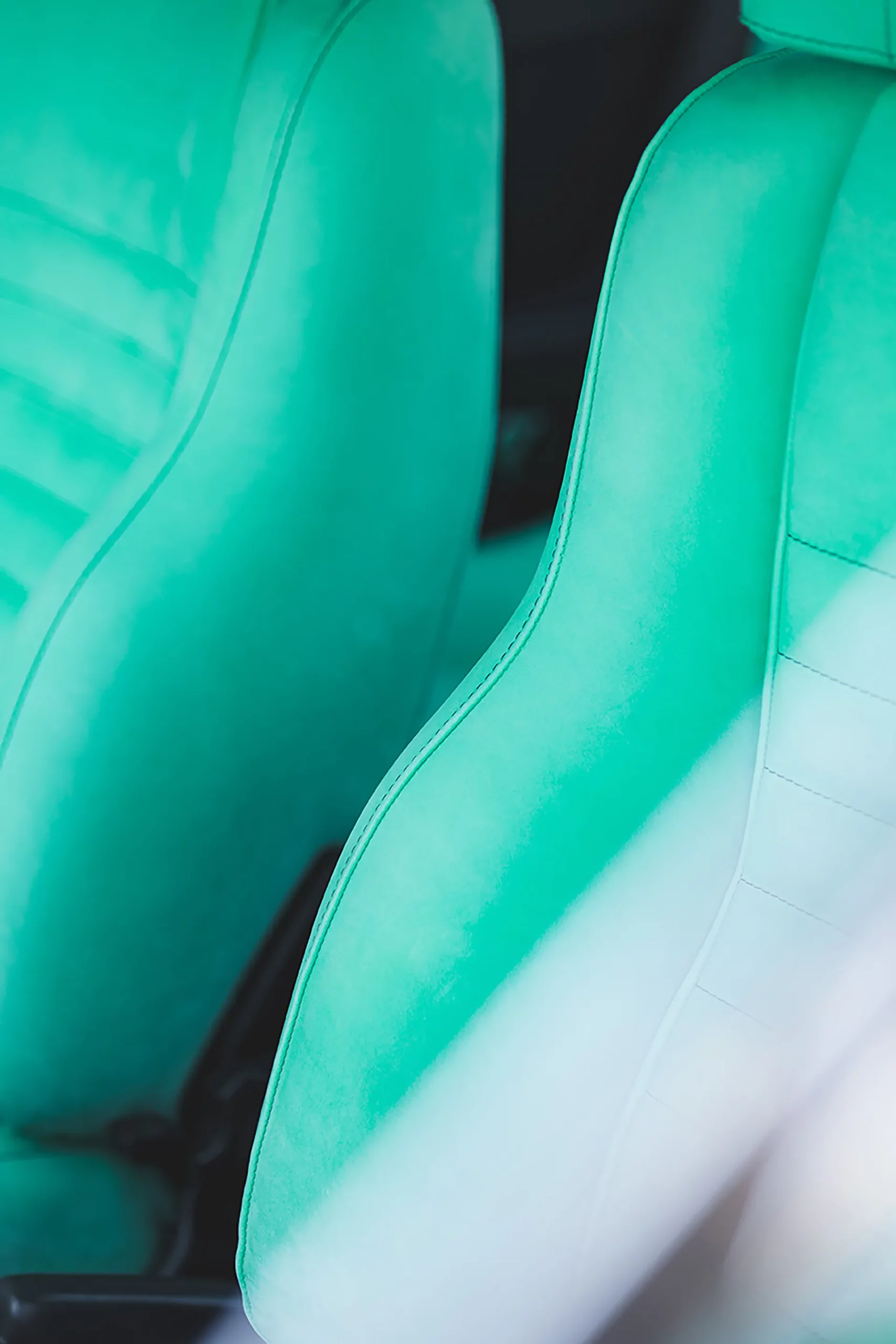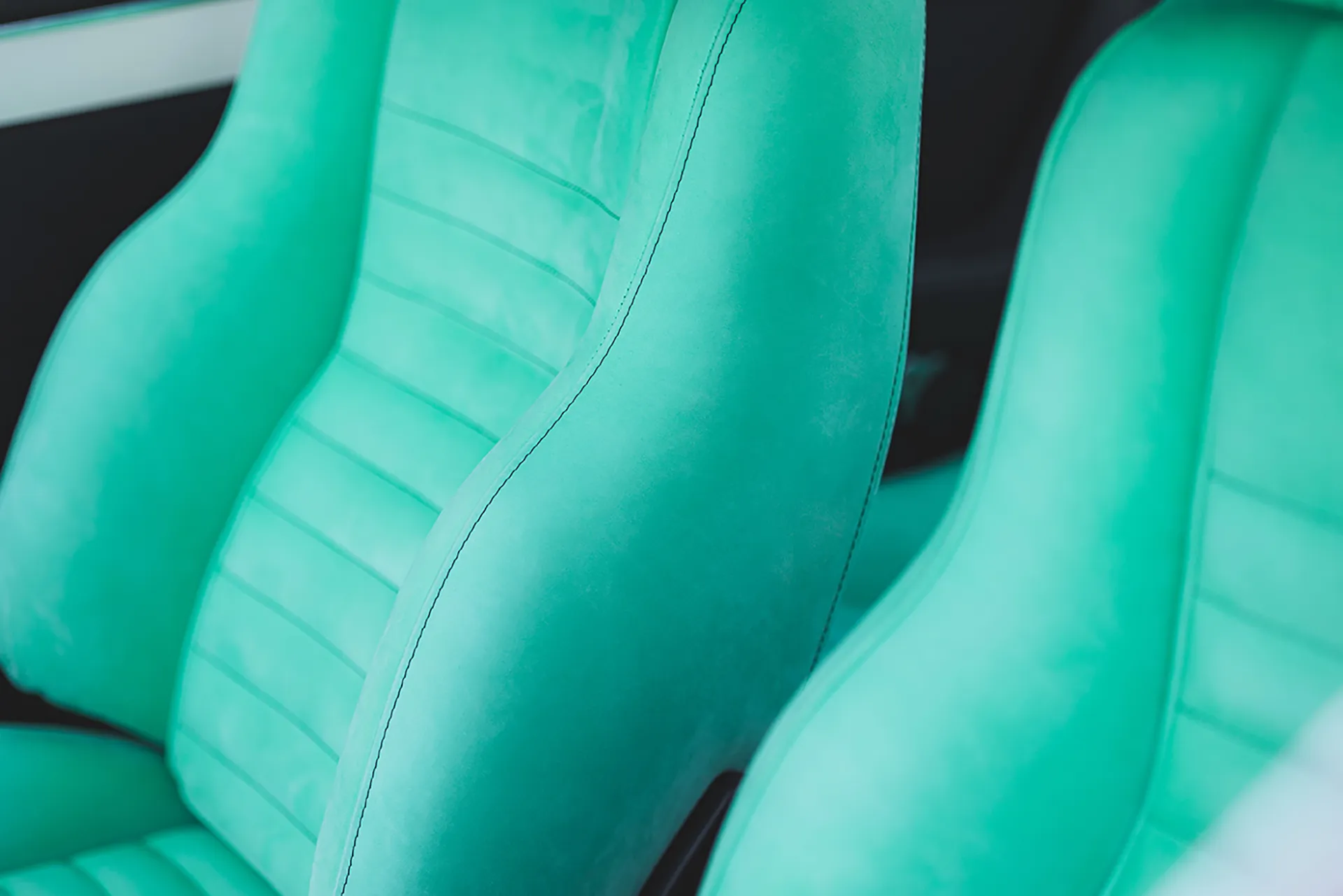 MR25 Falkorwears the flowing, timeless lines of the E9 coupé in bright Mythic White, accented with gleaming chrome. Inside, a custom mint green suede upholstery sets a tone of freshness and refined boldness. Every element has been bespoke-designed: fine stitching, deep carpets, wood accents, reimagined switchgear… together creating an interior both luminous and luxurious. In contrast to the raw edge often associated with restomods, FALKOR embraces elegance, poetry, and a sense of rare, understated luxury.