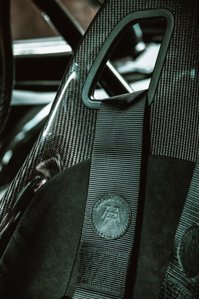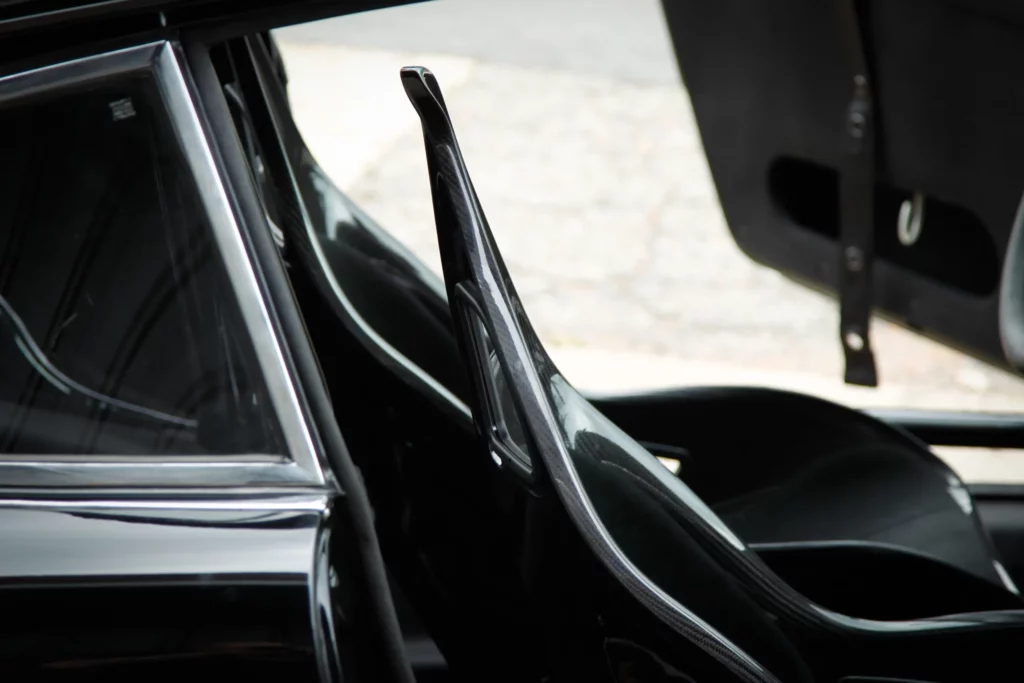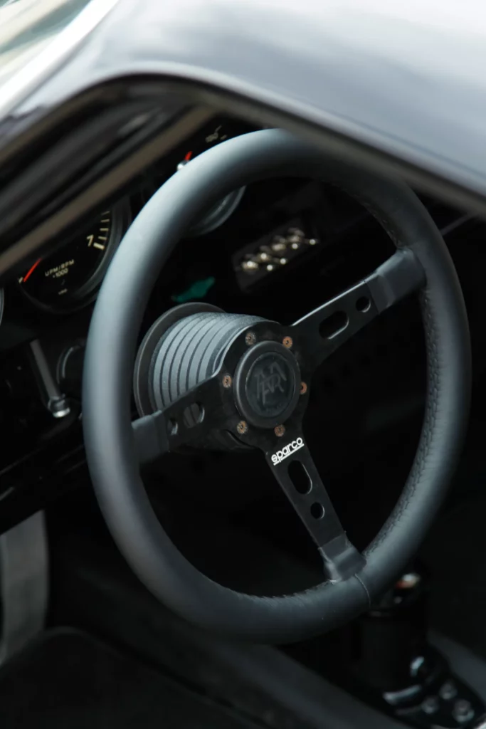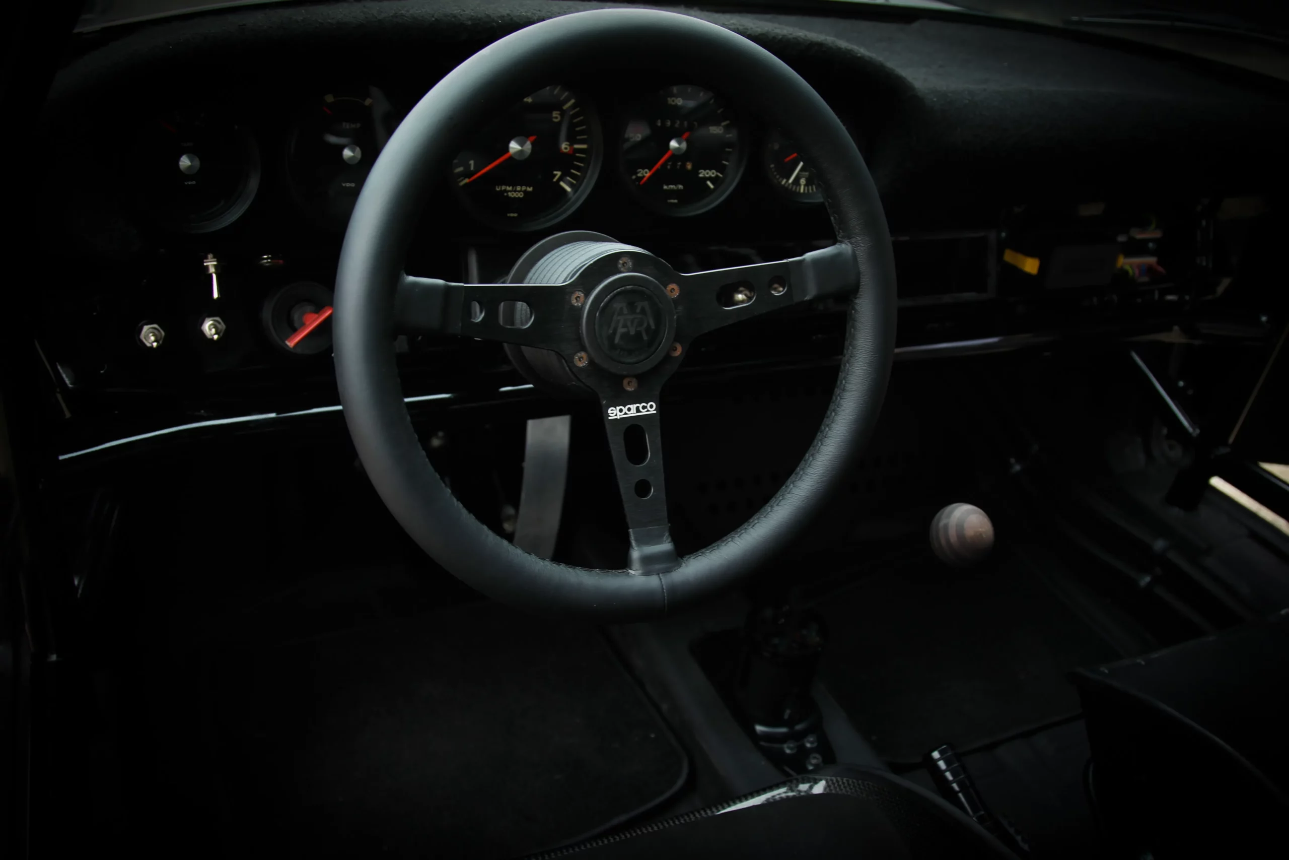 Every detail here serves a single purpose: performance. Behind its narrow fenders, yellow headlights and understated silhouette, Blackbird hides a predator’s soul. Inside, it’s stripped to the bone: carbon buckets, full roll cage, raw aluminum, wooden shift knob — no luxury, no excess. Just what matters. The contrast continues outside: matte black body, gloss black roll cage, white rally-style wheels. It’s not styled to impress. It’s built to perform, with every line and material echoing speed, focus and control.