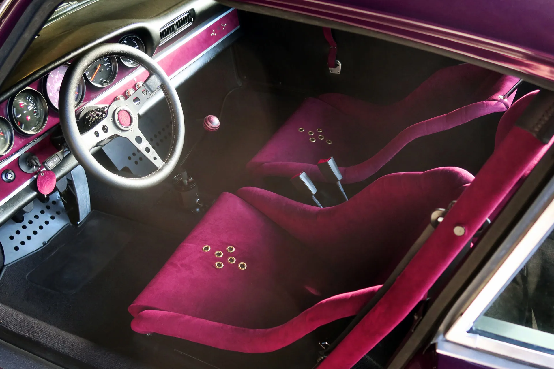 Brand: Porsche | Base Model: 911 3.2 | Year: 1987 | Engine: 3.2 | Power: 250 HP | Weight: 960 kg | Transmission: Manual | Color: Purple Slash | Upholstery: Alcantara & Aluminum | Usage: Daily driving