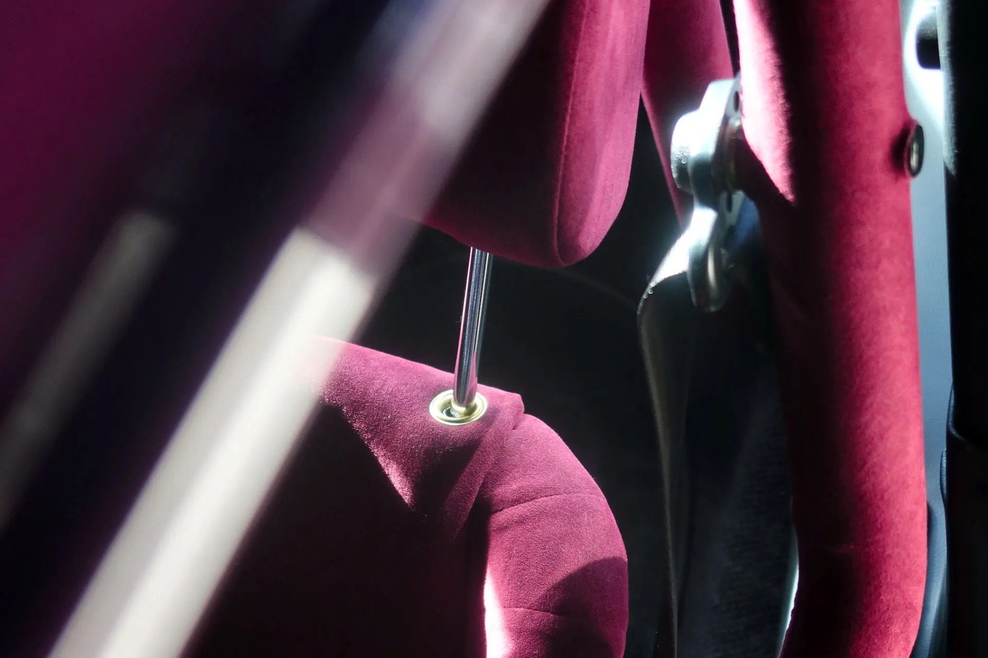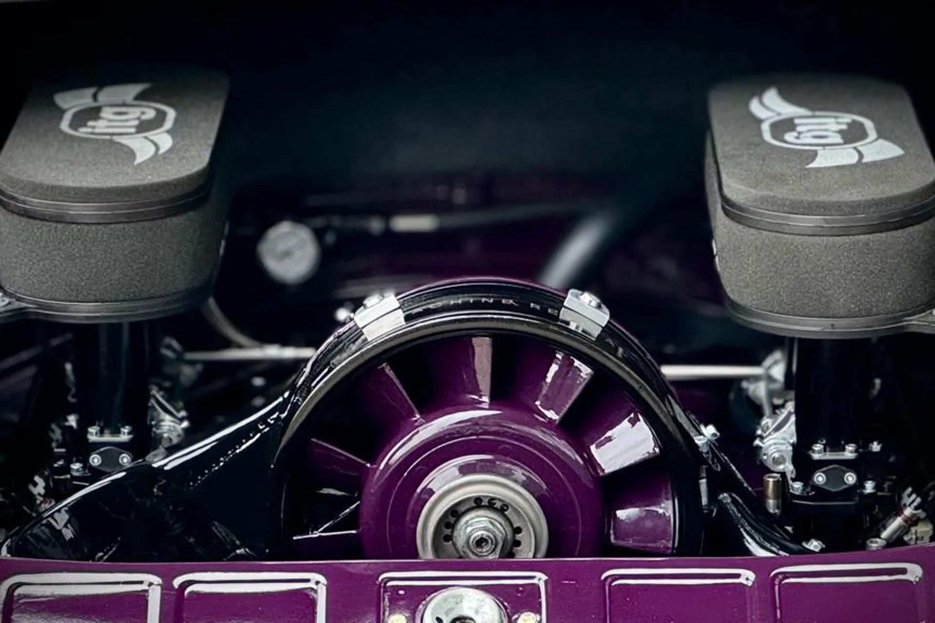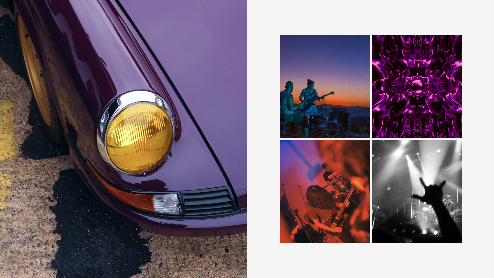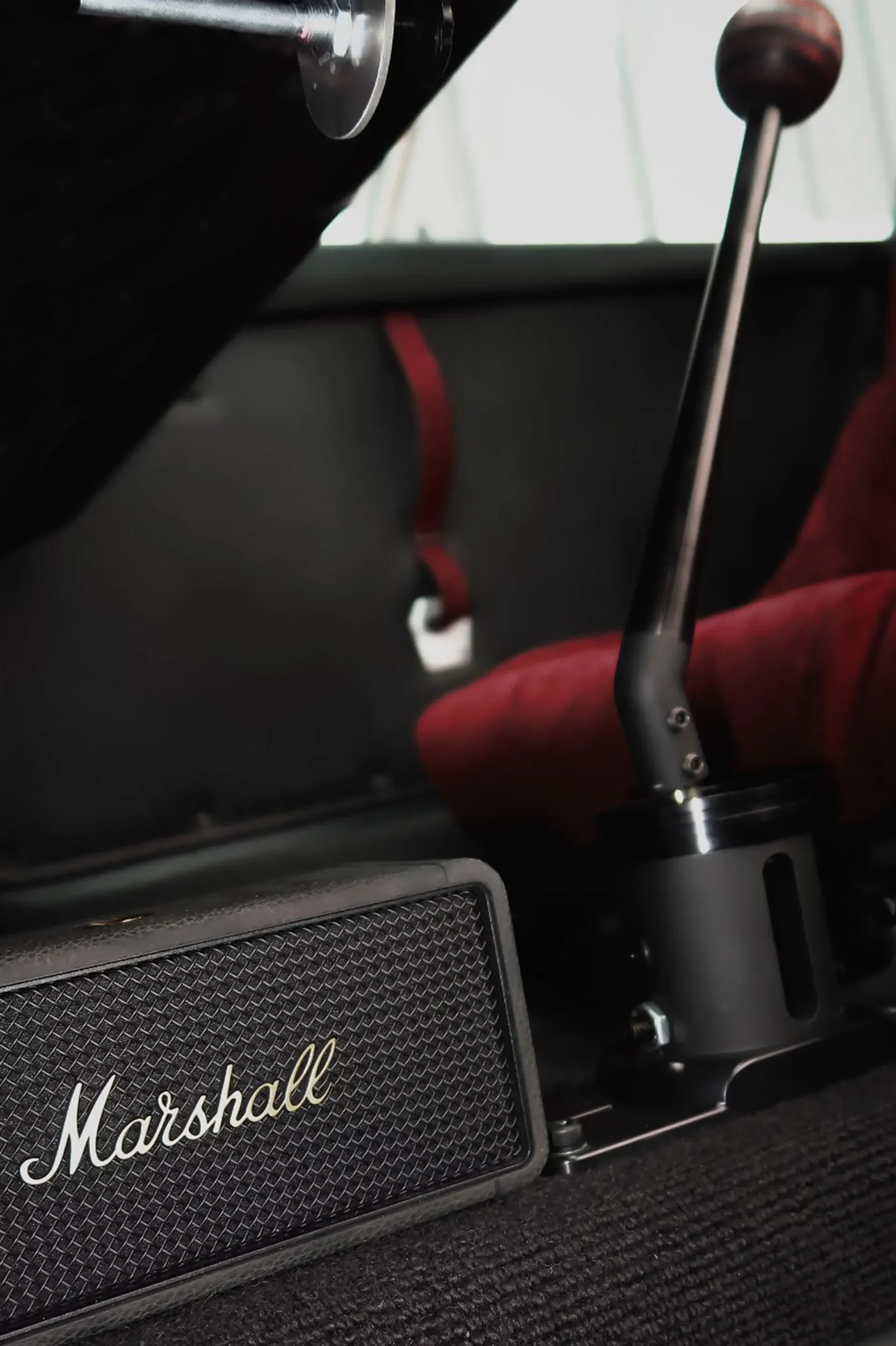 Its Slash Purple paint shifts like the winter sky, casting fiery or icy tones depending on the light. Subtle yet striking, MR30 Orion stands out with gold aluminum wheels, perforated door handles, and yellow headlights — details that nod to a rebellious, rock-inspired aesthetic. Inside, the atmosphere feels like a backstage dressing room: deep purple Alcantara stretched across the seats, dash, and roll cage, accented by iconic seat grommets, custom-made guitar-style knobs, a turned wood shifter, and a three-spoke steering wheel. Every element has been composed to resonate — visually, materially, emotionally.