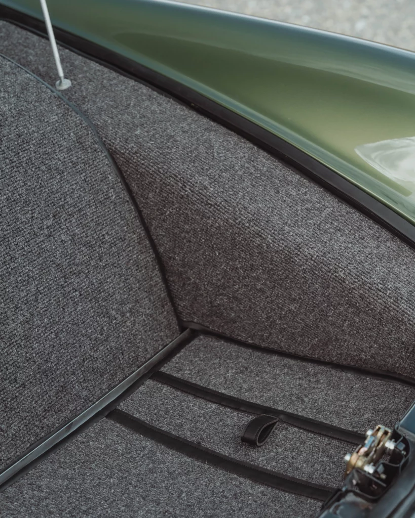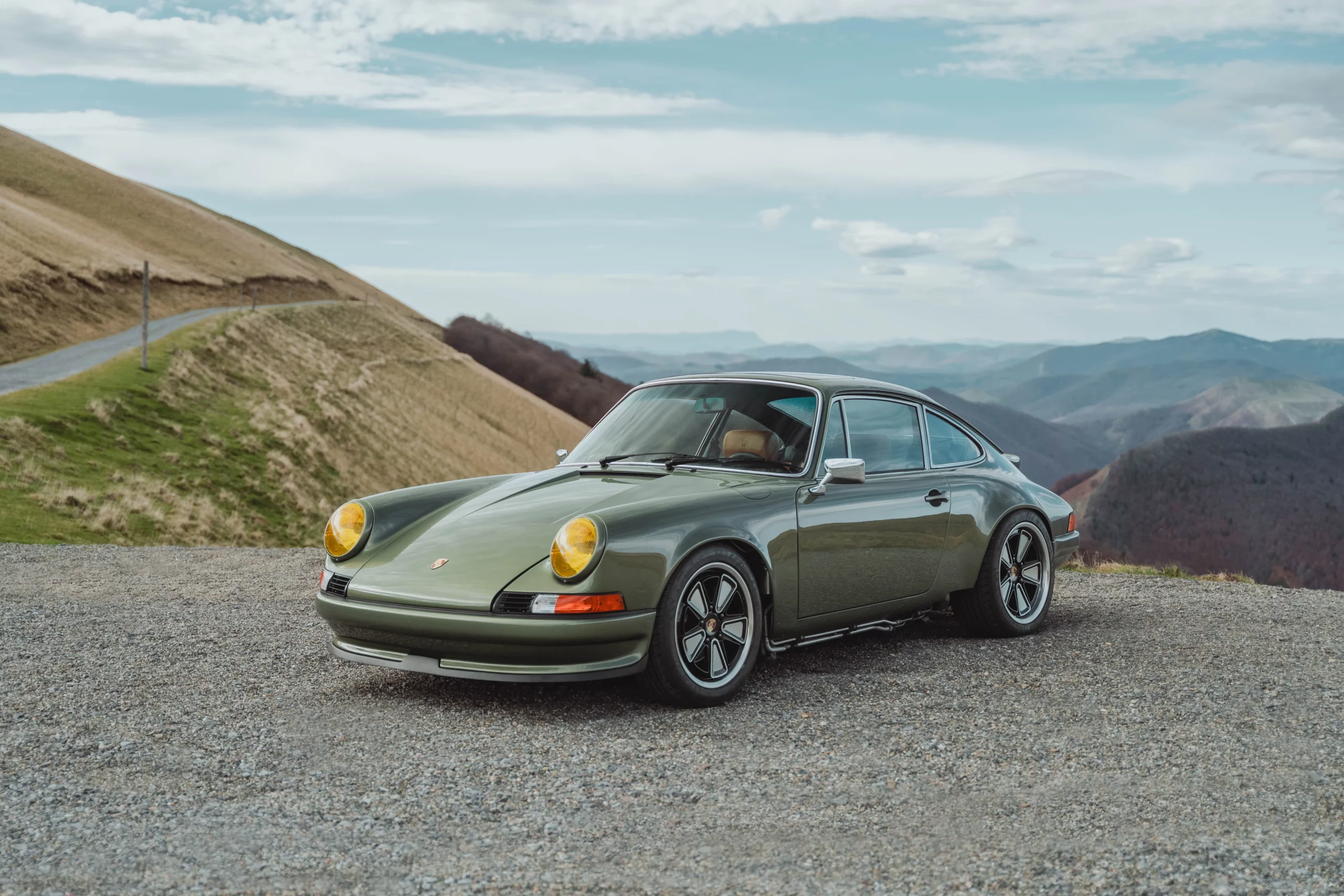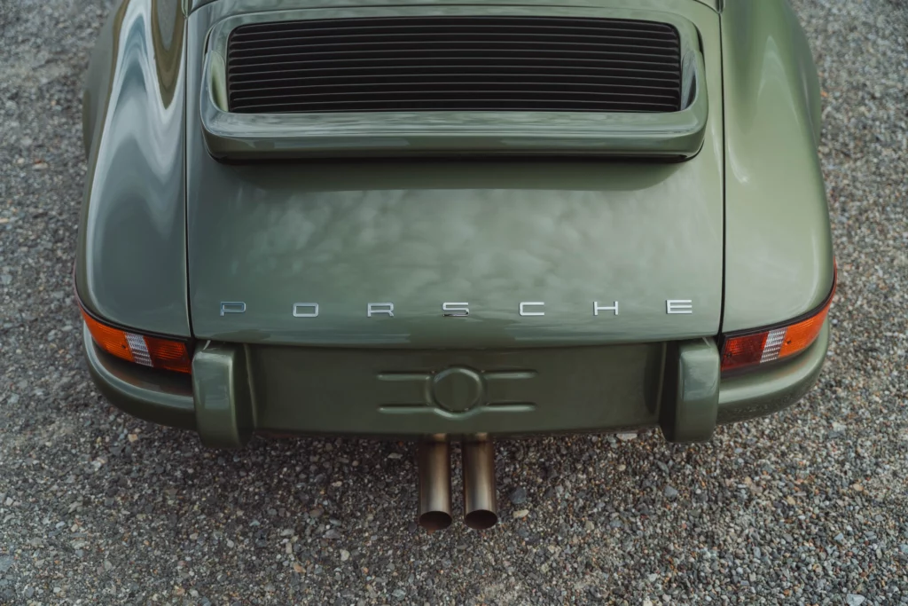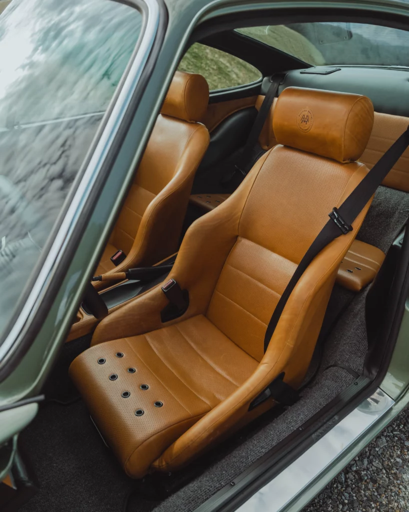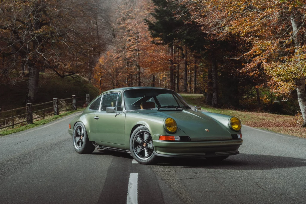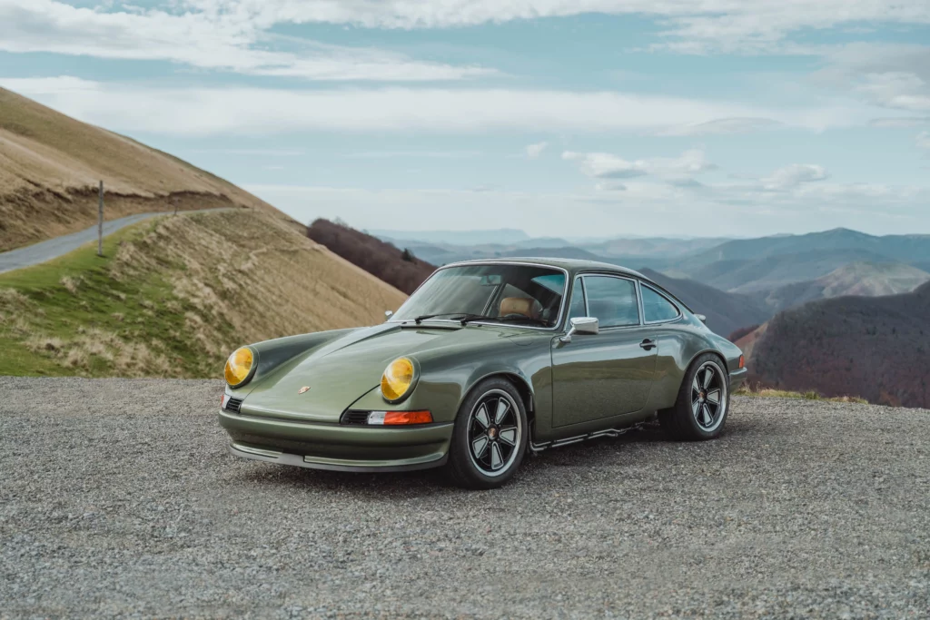 The design has been subtly refined to recover the balance, delicacy, and visual purity of early 911s, while relying on the more modern technical base of the 964. The lines are taut and legible, stripped of unnecessary ornamentation, remaining faithful to the aesthetic language of 1970s Porsche.The body is finished in an exclusive shade inspired by the deep greens of Lake Montagnon d’Iseye and the surrounding Pyrenean landscapes. This chromatic choice reinforces the car’s timeless character and naturally complements the classic volumes inherited from the 911 2.4 S.