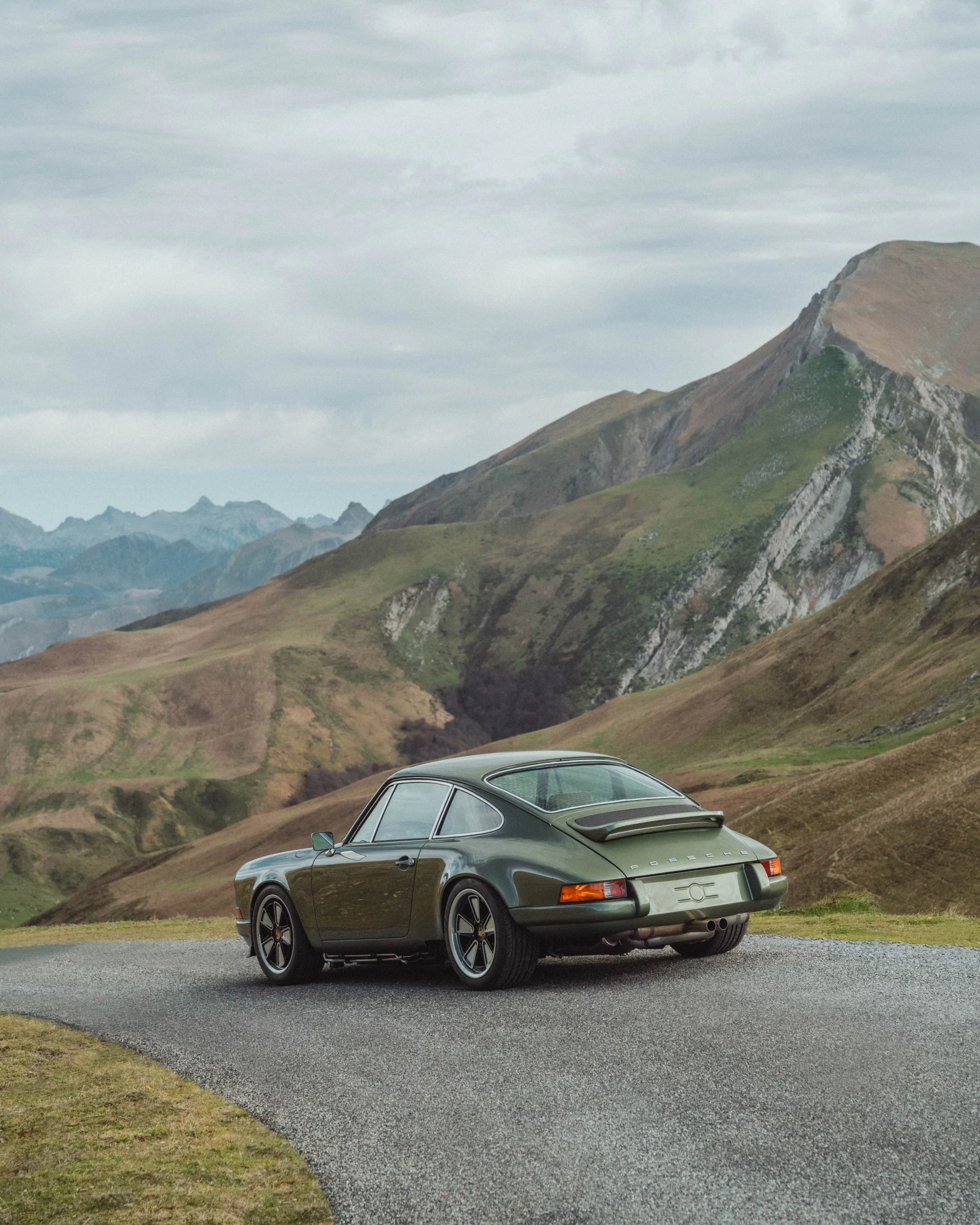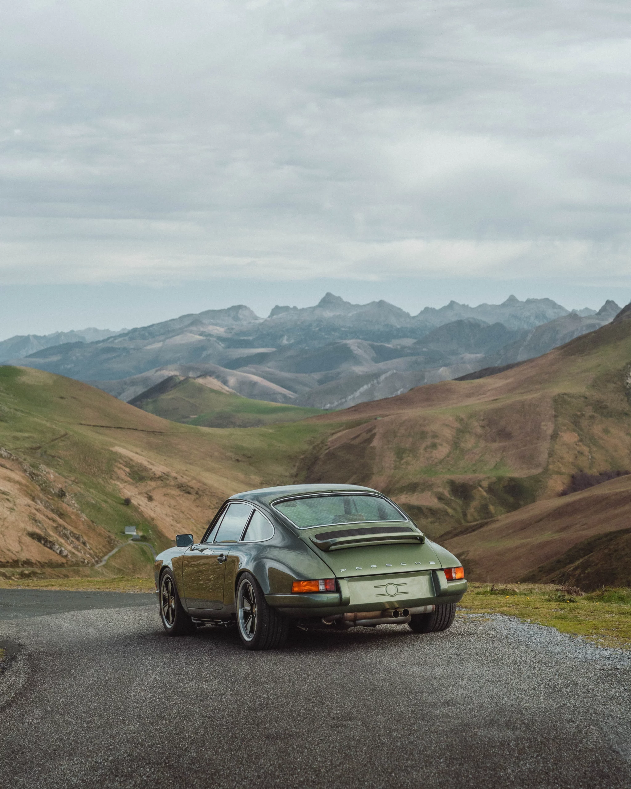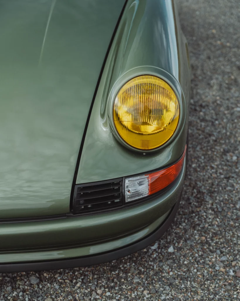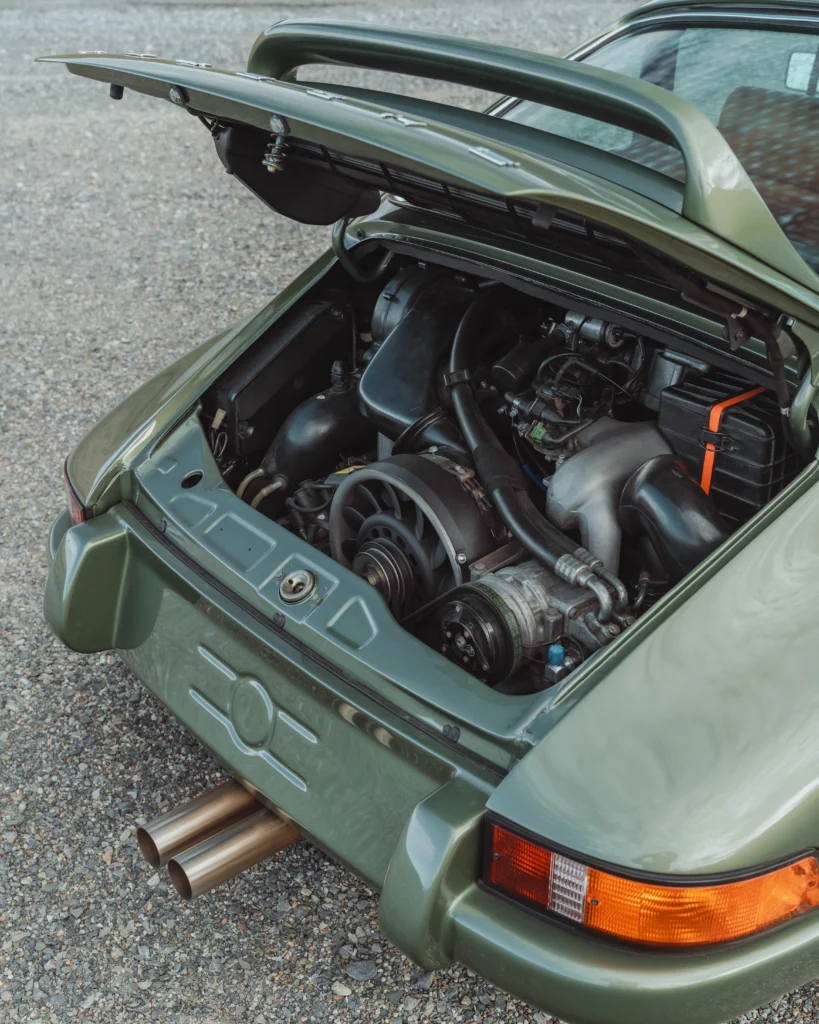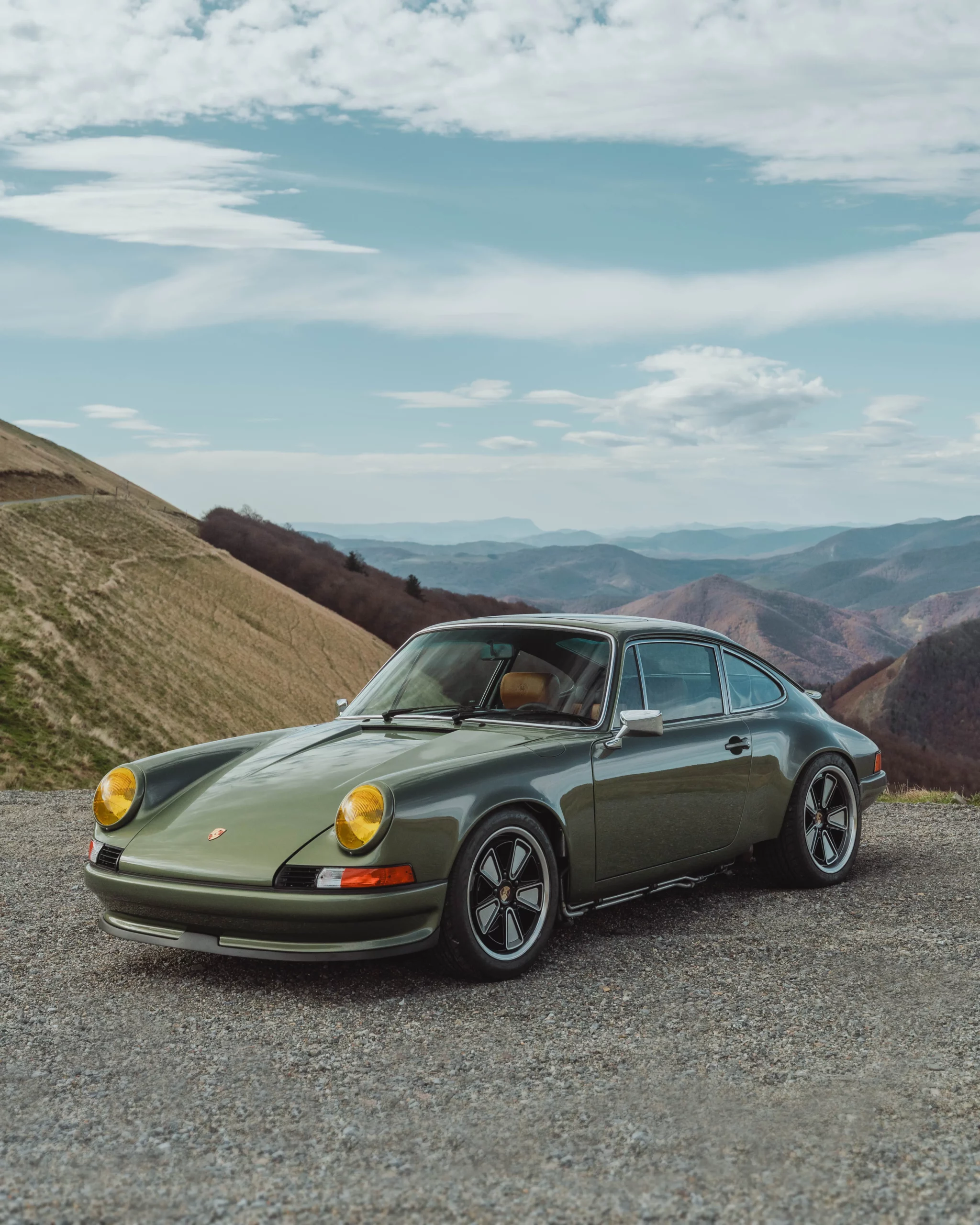The design has been subtly refined to recover the balance, delicacy, and visual purity of early 911s, while relying on the more modern technical base of the 964. The lines are taut and legible, stripped of unnecessary ornamentation, remaining faithful to the aesthetic language of 1970s Porsche.The body is finished in an exclusive shade inspired by the deep greens of Lake Montagnon d’Iseye and the surrounding Pyrenean landscapes. This chromatic choice reinforces the car’s timeless character and naturally complements the classic volumes inherited from the 911 2.4 S.
