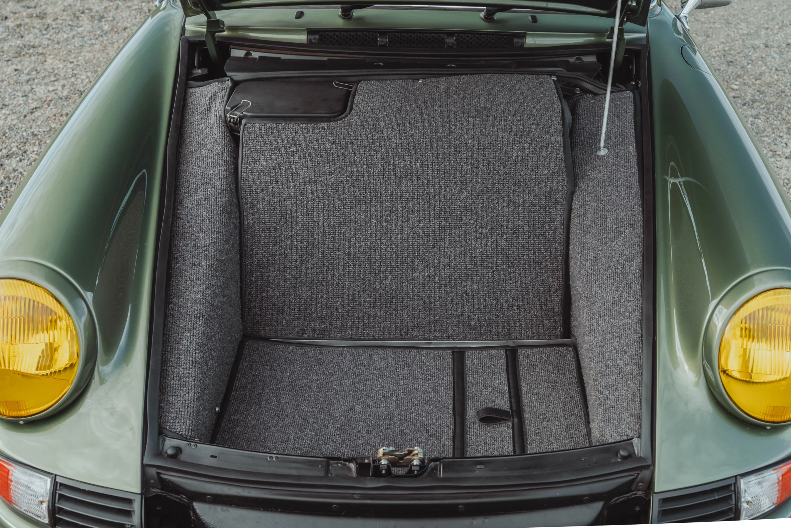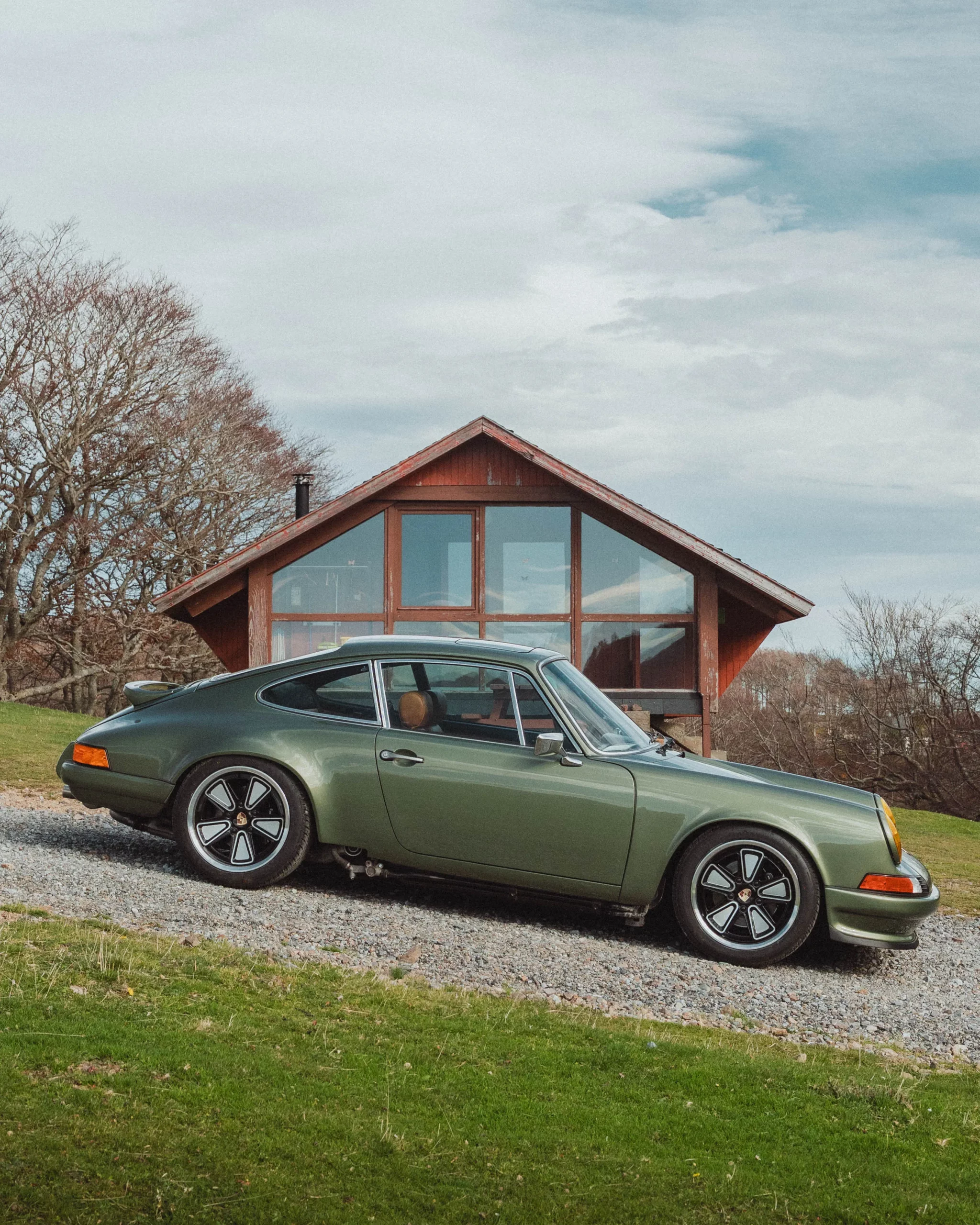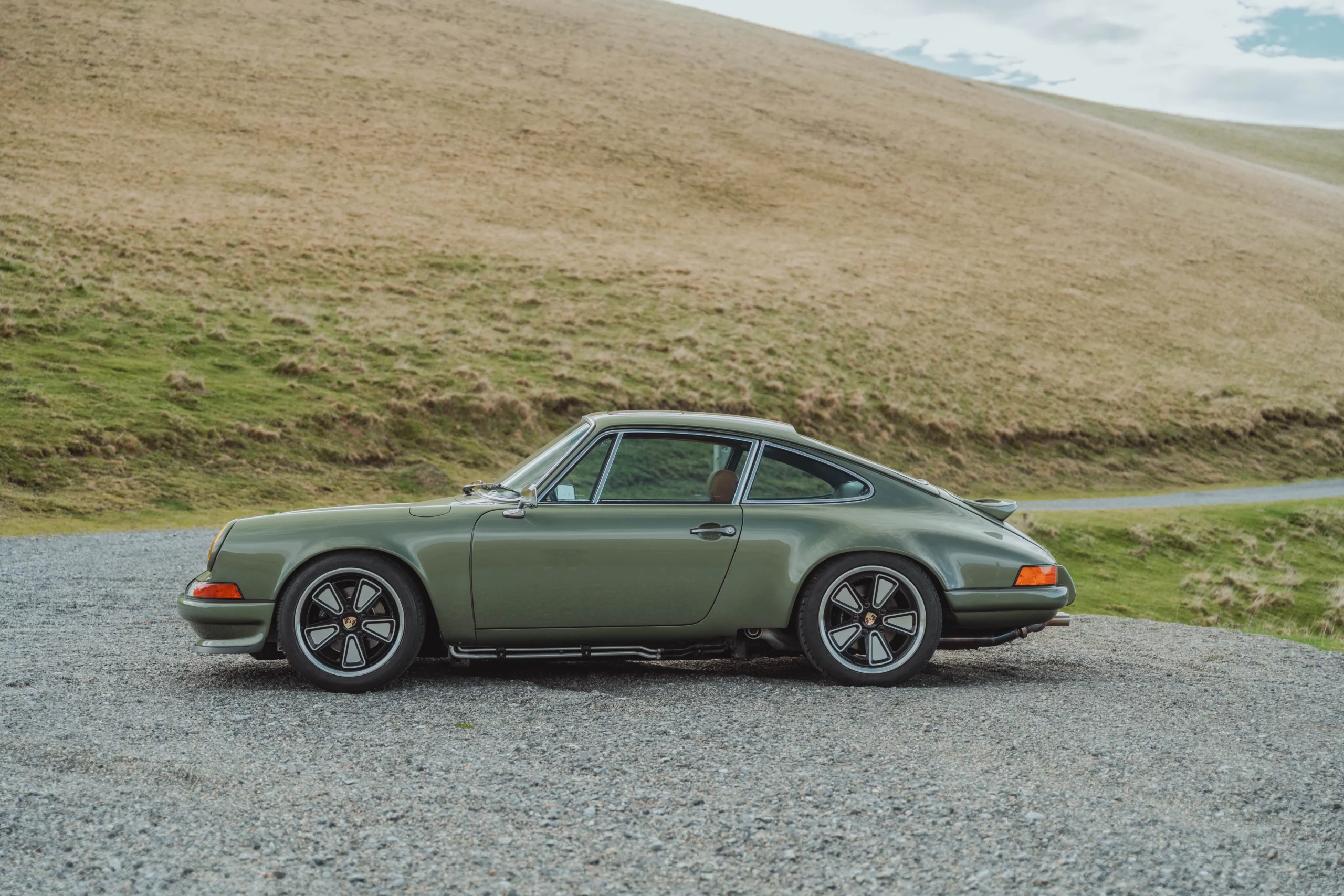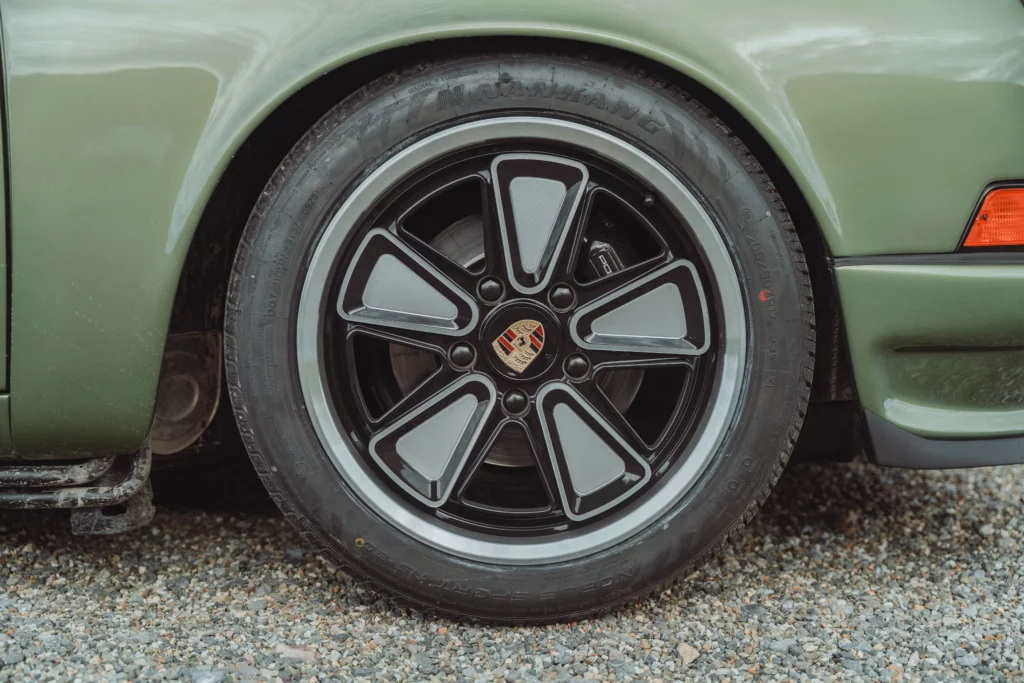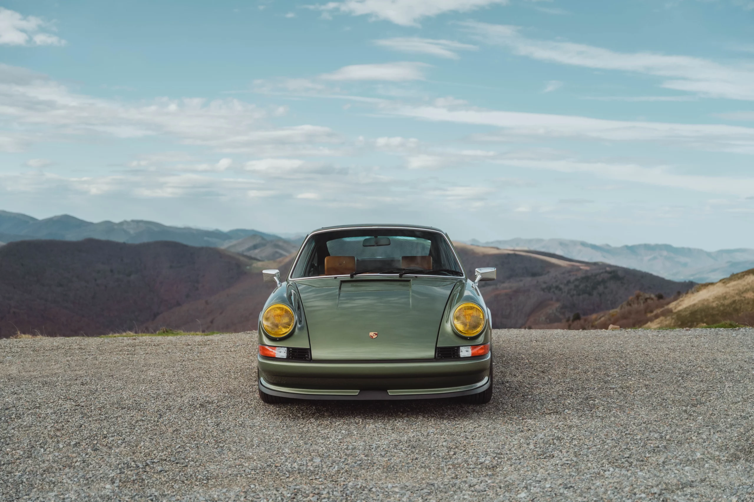 The design has been subtly refined to recover the balance, delicacy, and visual purity of early 911s, while relying on the more modern technical base of the 964. The lines are taut and legible, stripped of unnecessary ornamentation, remaining faithful to the aesthetic language of 1970s Porsche.The body is finished in an exclusive shade inspired by the deep greens of Lake Montagnon d’Iseye and the surrounding Pyrenean landscapes. This chromatic choice reinforces the car’s timeless character and naturally complements the classic volumes inherited from the 911 2.4 S.