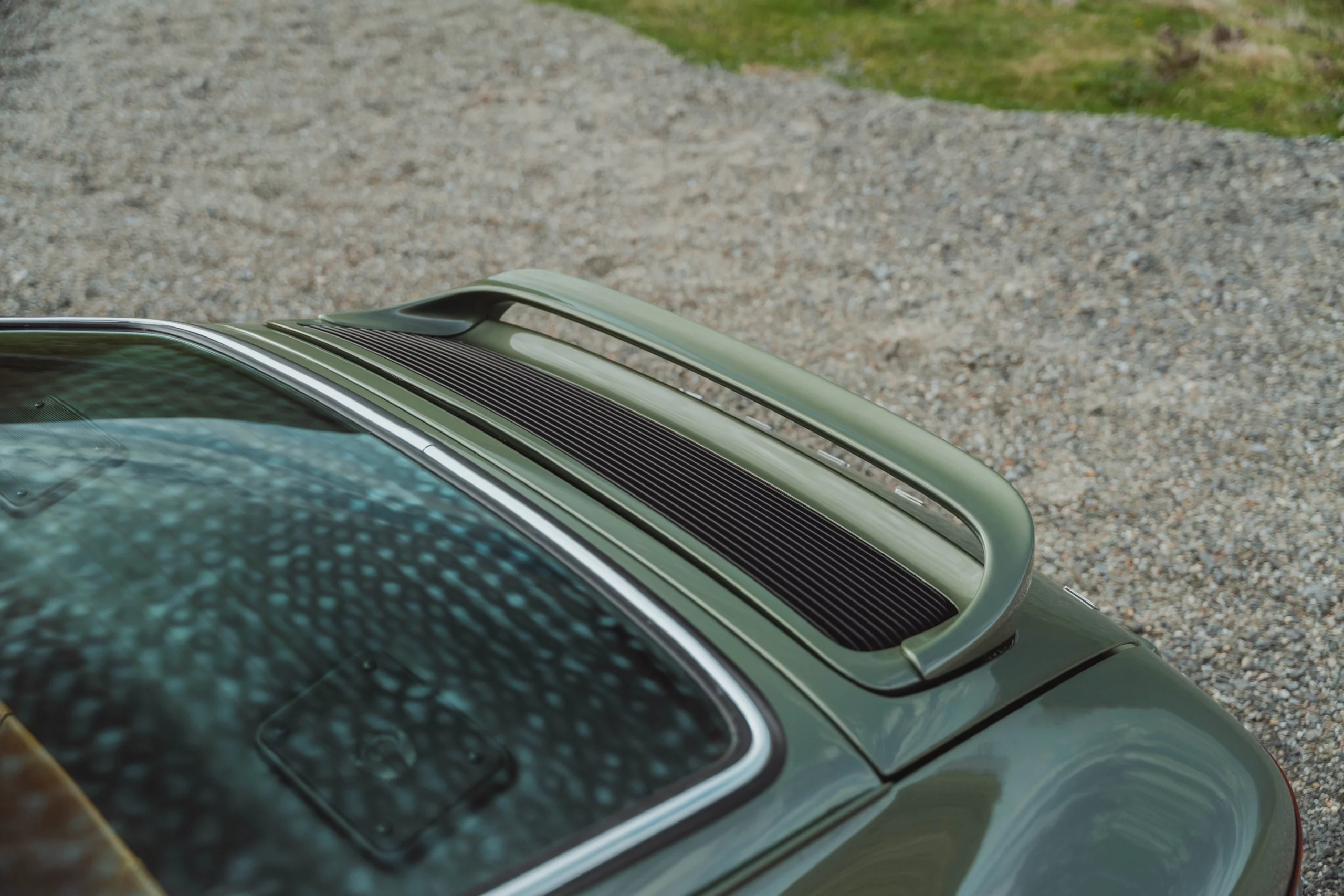 Brand : Porsche | Base model : 964 Carrera 4 | Revival : 2025 | Engine : 3.6 | Power : 250 hp | Weight : 1200 kg | Transmission : Manual | Color : Legacy Green | Upholstery : Leather| Use : Drives along mountain roads