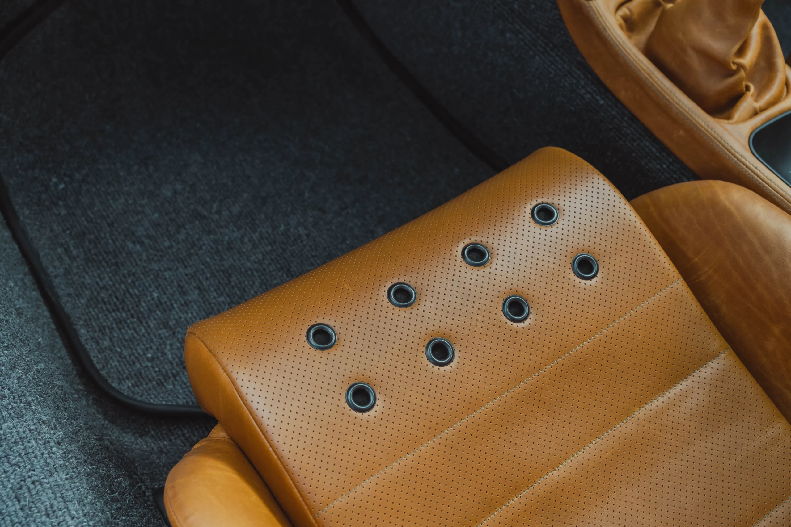 Inside, cognac leather feels inevitable. Warm and enduring, it recalls the interiors of great heritage Porsches — cars that tell stories of family, passion passed down through generations, and a sensual relationship with driving.
